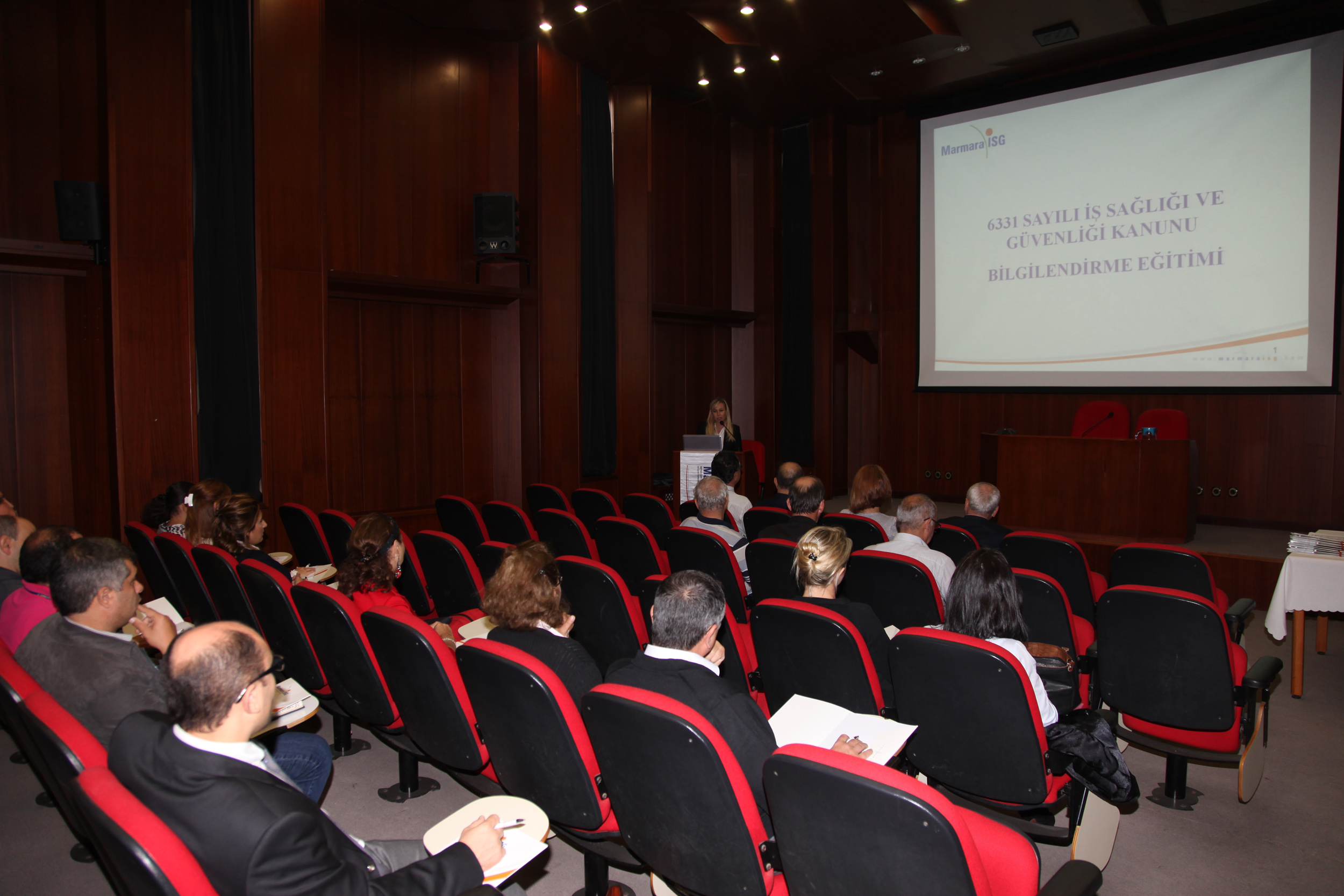 İşyerlerinde iş sağlığı ve güvenliğinin sağlanması, mevcut sağlık ve güvenlik şartlarının iyileştirilmesi için işveren ve çalışanların görev-yetki-sorumluluk-hak ve yükümlülüklerini düzenleyen yasa hakkındaki bilgilendirme, BUSKİ Toplantı Salonu´nda yapıldı. Marmara İşyeri Ortak Sağlık Güvenlik Birimleri kurumundan İş Sağlığı ve Güvenliği Uzmanı Hülya Varlık´ın yaptığı konuya ilişkin sunuma, Büyükşehir Belediyesi bünyesinde görevli bürokratlar katıldı.