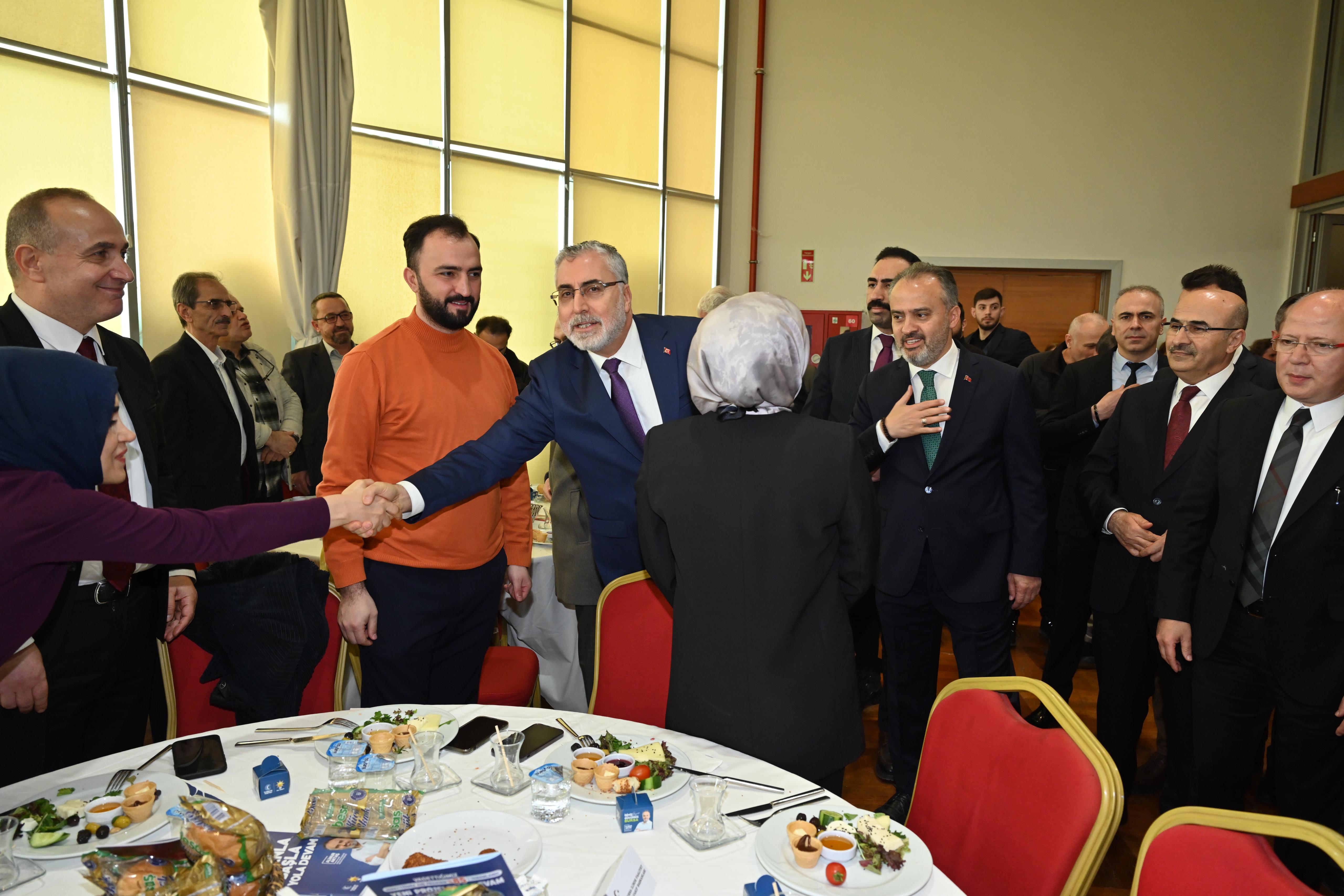 Çalışma ve Sosyal Güvenlik Bakanı Vedat Işıkhan, eşsiz tarihi, coğrafyası, kültürel zenginliğiyle gözü ve gönlü doyuran yeşil Bursa’da olmaktan büyük mutluluk duyduğunu söyledi. Ülkenin dört bir yanında sivil toplum kuruluşlarıyla, esnafla ve iş insanlarıyla bir araya geldiklerini belirten Bakan Işıkhan, buluşmalarda toplumsal ve çalışma hayatına dair konularda fikir alışverişlerde bulunduklarını anlattı. Tüm paydaşların fikirlerine önem verdiklerini belirten Işıkhan, “Cumhurbaşkanımız Recep Tayyip Erdoğan öncülüğünde ‘daha iyisini nasıl yapabiliriz’ yaklaşımıyla çalışıyoruz. ‘Aşk ile çalışan yorulmaz’ diyerek bizler de yorulmuyoruz. Bakanlık olarak Bursalıların hizmetindeyiz. Esnaf, çiftçi, memur, girişimci fark etmeksizin her ölçekte üretime, istihdama ve kalkınma sürecine destek olan herkese destek oluyoruz. Önümüzdeki ay açıklanacak ‘İstihdam ve iş gücü verileri’nde güzel neticeleri hep birlikte göreceğiz. İstihdamda ve iş gücünde en iyi verileri elde ettiğimiz tarihi zirveleri yakaladığımız bir sürecin içerisindeyiz. Öncü göstergeler mart ayında hem genelde hem kadınlarda hem de gençlerde 2002 yılından bu yana en yüksek iş gücüne katılım oranları ve istihdam oranlarının ortaya çıkacağına işaret etmektedir. Son 22 yılın en düşük işsizlik oranına ulaşacağımızı da öngörmekteyiz. Emine Erdoğan’ın öncülüğünde ‘iş pozitif kadın istihdam projesi’ kapsamında sunduğumuz teşvik ve desteklerle iki hafta gibi kısa sürede 15 binden fazla kadını İş-Kur aracılığıyla işe yerleştirdik. Kadın istihdamının artmasını çok önemsiyoruz. Bundan sonra da iş gücüne katılıma destek olacak politikaları hayata geçirmeye devam edeceğiz” diye konuştu.