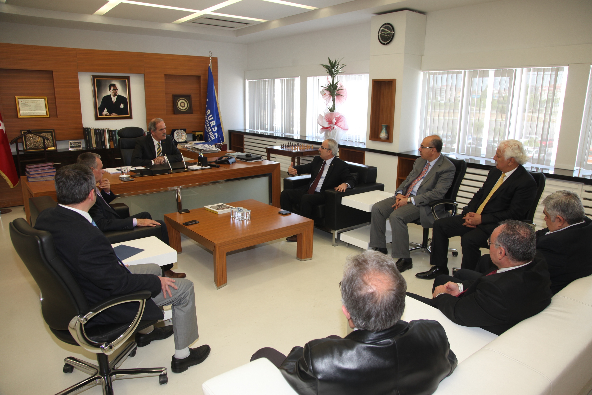 Büyükşehir Belediye Başkanı Recep Altepe, güven tazeleyerek yeniden görevine başlamasının ardından tebrik ziyaretine gelen konuklarını BURULAŞ’taki makamında ağırladı. Başkan Altepe, Makine Mühendisleri Odası ve Mimarlar Odası Bursa şubeleri, Yasiad - Butibak, Busiad ve Dağ-Der yönetim kurulu üyeleri, Şoförler ve Otomobilciler Esnaf Odası, İl ve İlçeleri Servis Taşımacılığı Derneği ve Muharip Gazileri Derneği yönetim kurulları üyeleri ile bir araya gelerek, kentte yapılan çalışmaları paylaştı. Başkan Altepe, Bursa’nın bundan sonraki süreçte daha ön plana çıkacağını hatırlatarak, “Bursa için bundan sonra daha güzel bir dönem olacak. Bugüne kadar Büyükşehir Belediyesi olarak yaptığımız hizmetlerin faydalarını ve Bursa’nın daha da ileriye gittiğini hep birlikte göreceğiz” diye konuştu.