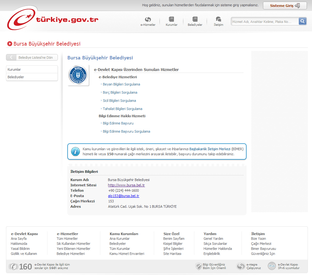 - BİLGİ İŞLEM ŞUBE MÜDÜRLÜĞÜ TARAFINDAN YÜRÜTÜLEN PROJE SONUCUNDA BURSA BÜYÜKŞEHİR BELEDİYESİ E-DEVLET’E ENTEGRE OLDU.
