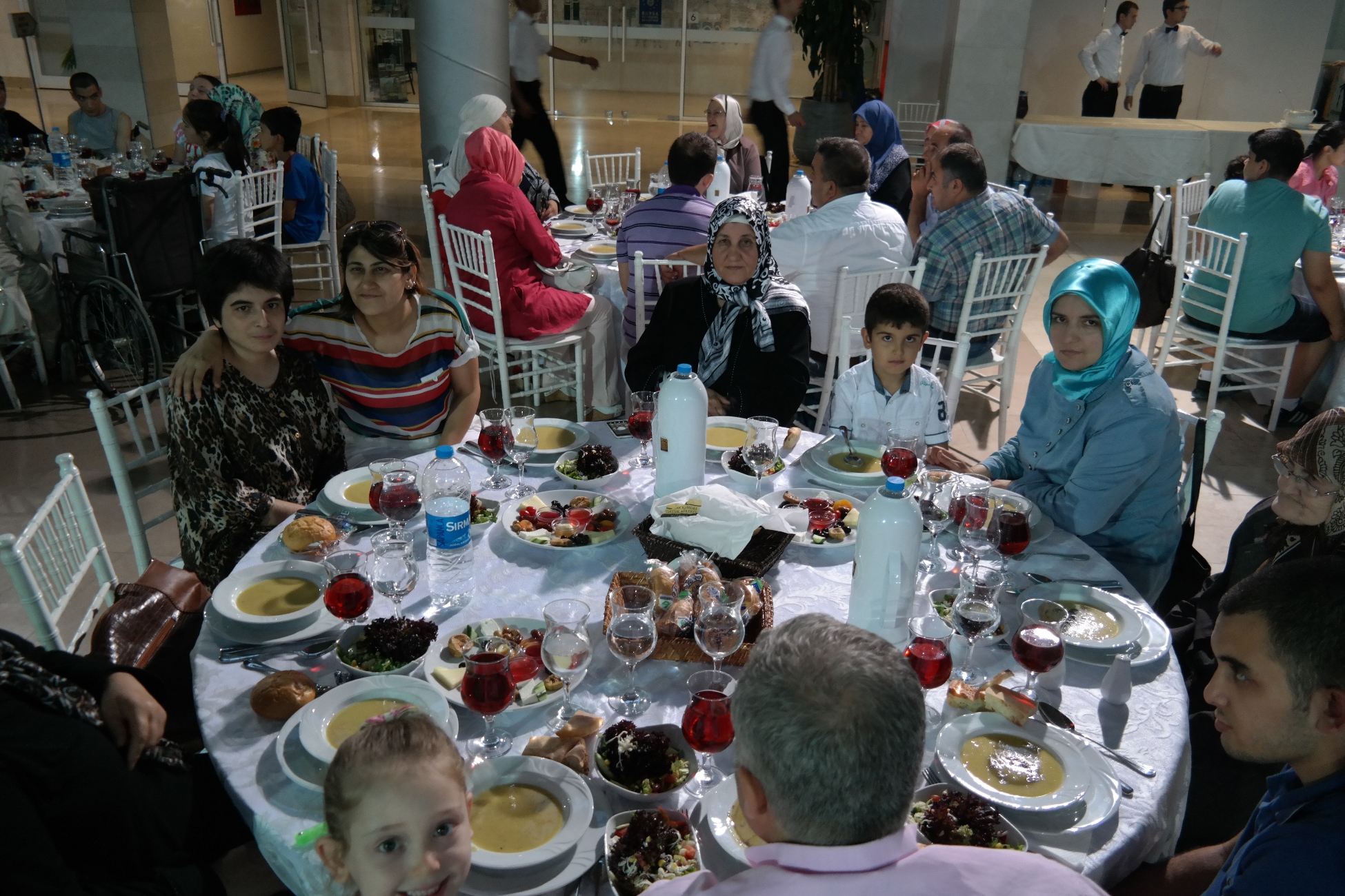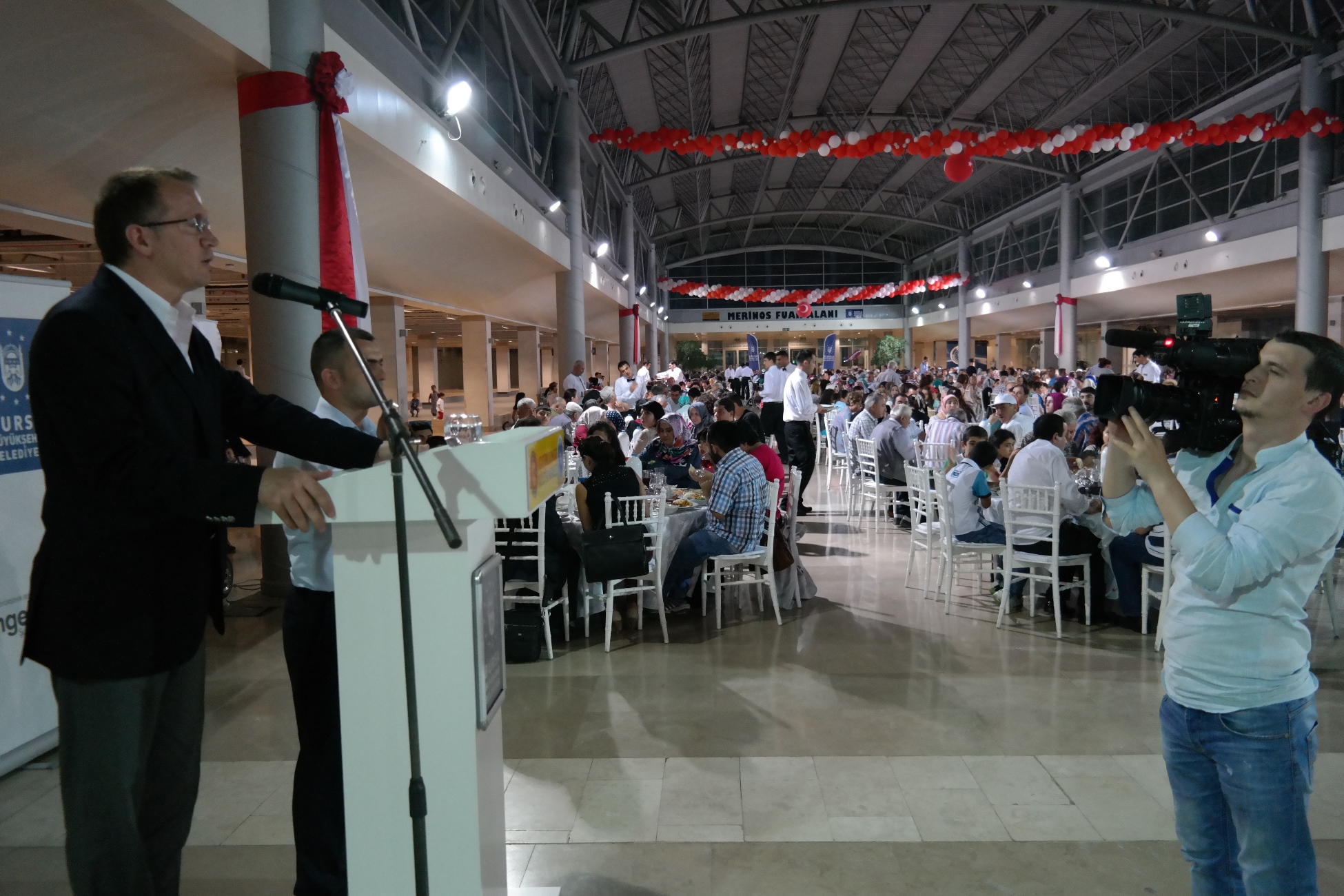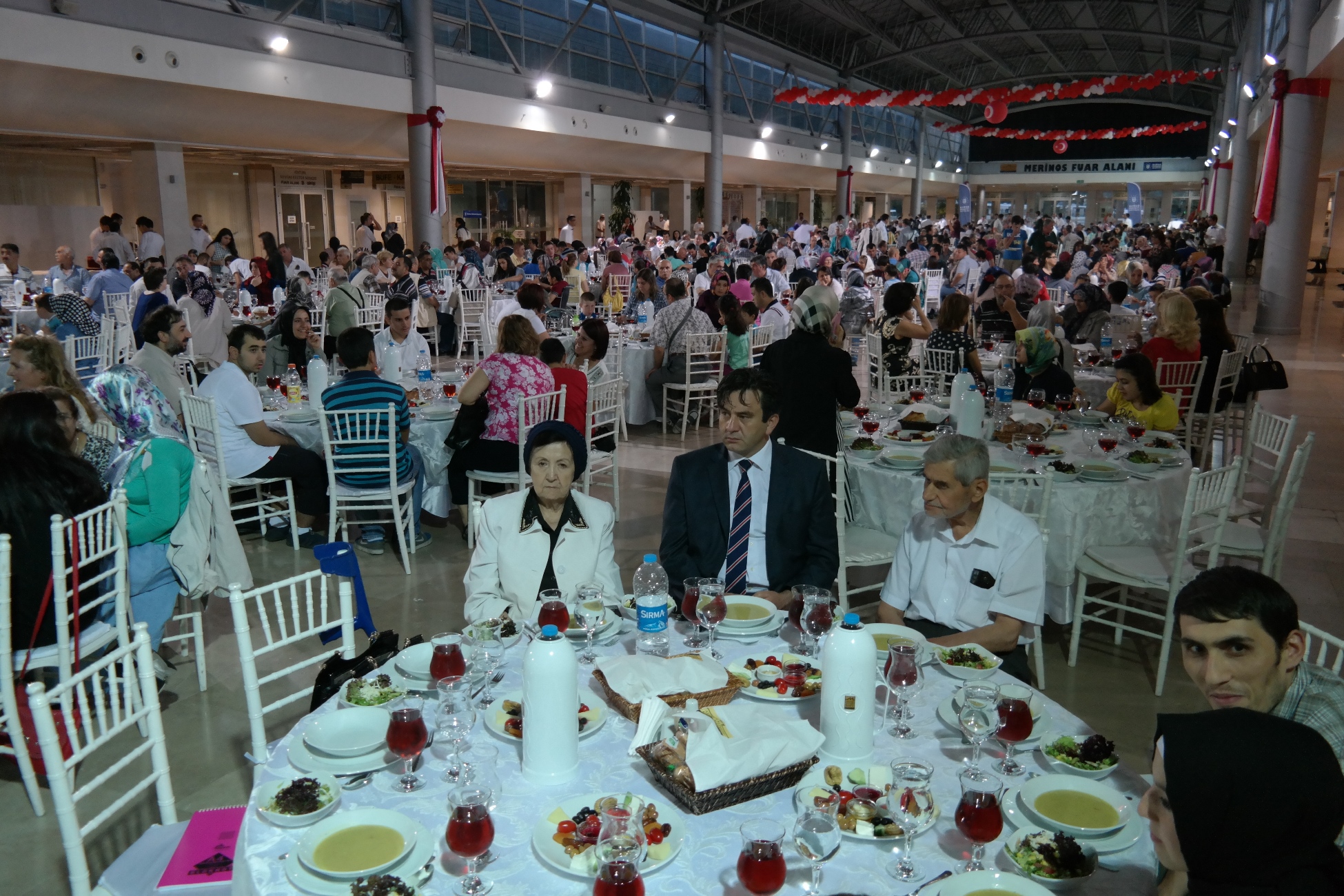 Yaklaşık 1500 kişinin katıldığı iftar programı, Merinos Atatürk Kongre ve Kültür Merkezi Fuaye Salonu’nda gerçekleştirildi. Aileleri ve sevdikleriyle birlikte Büyükşehir Belediyesi’nin davetine icabet eden engelliler, gönüllerince bir akşam geçirdi. Fuaye salonunun tamamı, yuvarlak masa düzeni şeklinde engelli aileleri için dizayn edildi. Geleneksel hale getirilen iftar programı, bu yıl üçüncü kez düzenlendi.