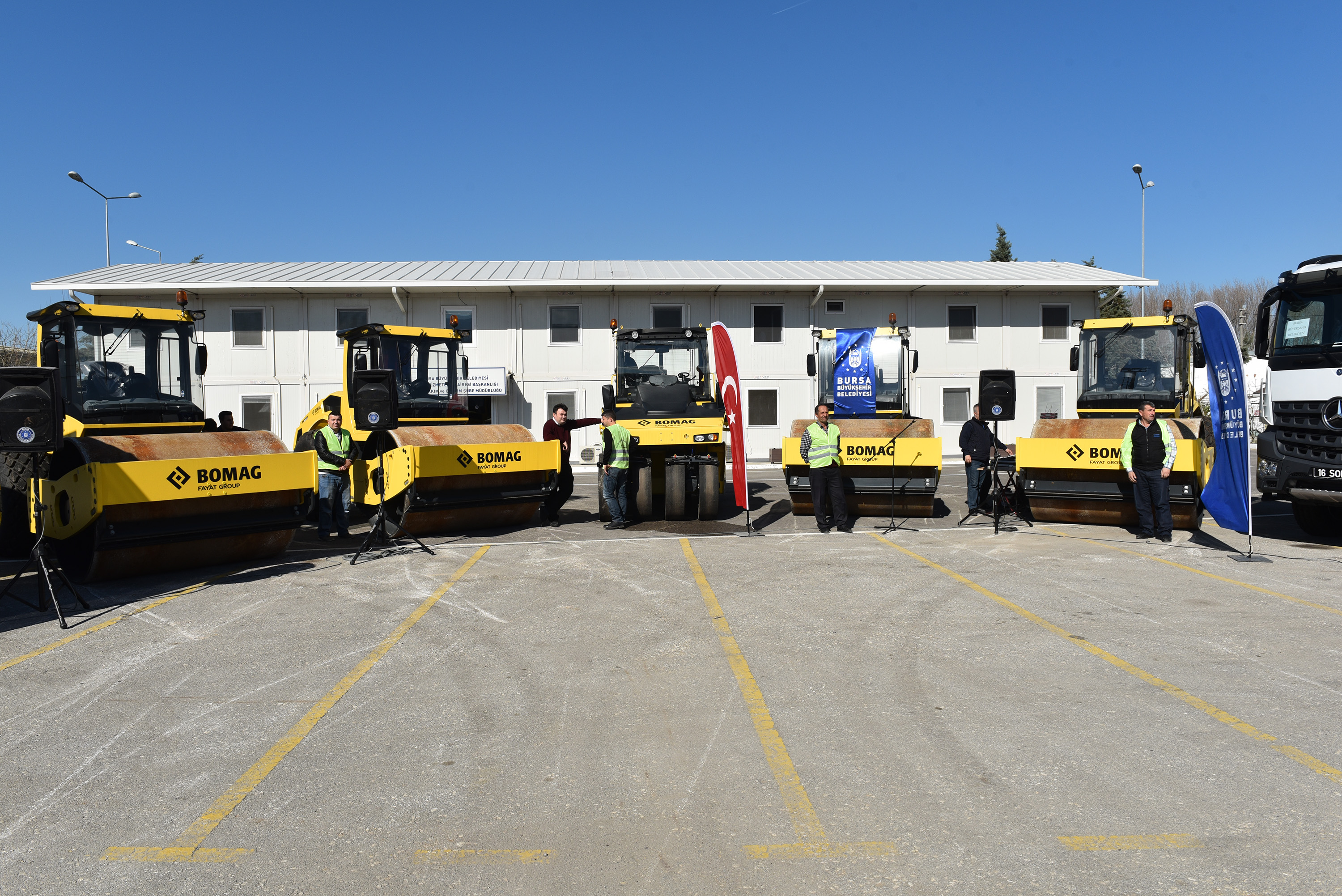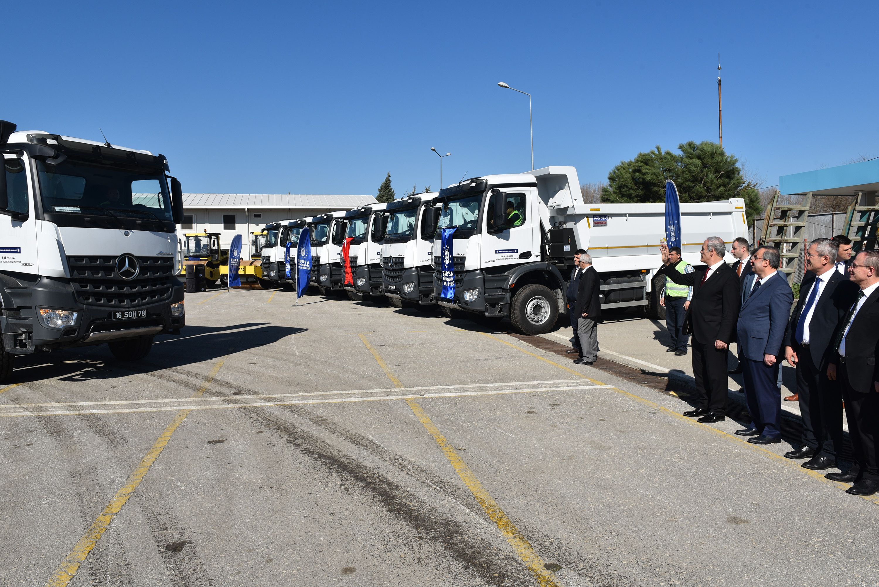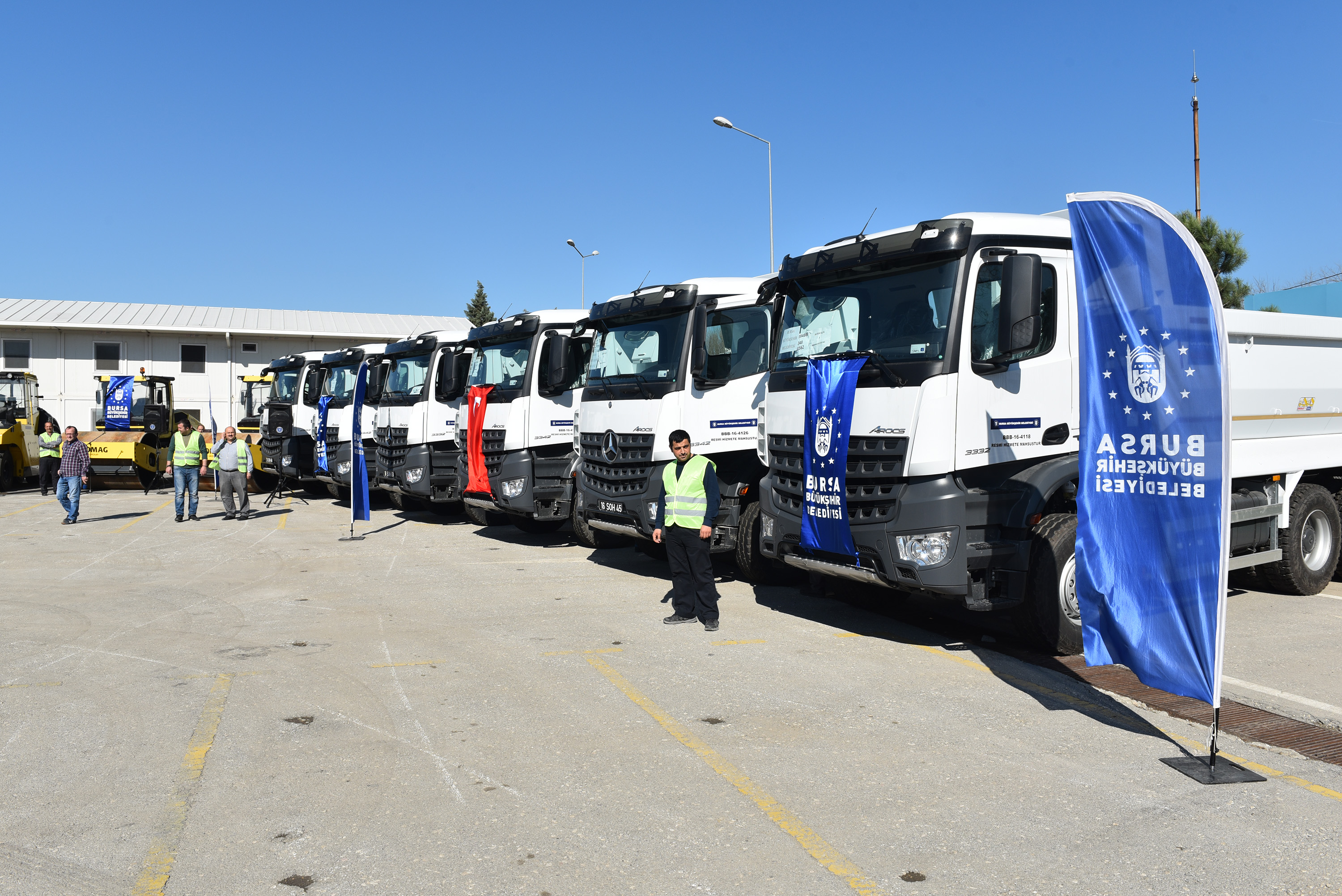 Bursa’yı geleceğe taşıyacak projeleri bir bir hayata geçirirken, hizmet ağına yeni eklenen tüm ilçelerde de alt yapı başta olmak üzere her alanda önemli yatırımları başlatan Büyükşehir Belediyesi, hizmette aksamanın yaşanmaması için tüm ilçelerdeki şantiyeleri yeni araçlarla donatıyor. İlçelere has oluşturulan şantiyeler ile araçların bir ilçeden diğer ilçeye taşınmasının önüne geçilirken, böylelikle çalışmaların daha kısa zamanda sonlandırılması hedefleniyor. Özellikle yol yapım çalışmalarında kullanılacak 25 araç daha Büyükşehir hizmet filosuna eklenirken; 5 adet yol yapım silindiri, 5 adet çekici araç, 14 metreküplük 14 adet damper ve 1 adet yol çizgi makinesi için 7 milyon TL’lik ödeme yapıldı.