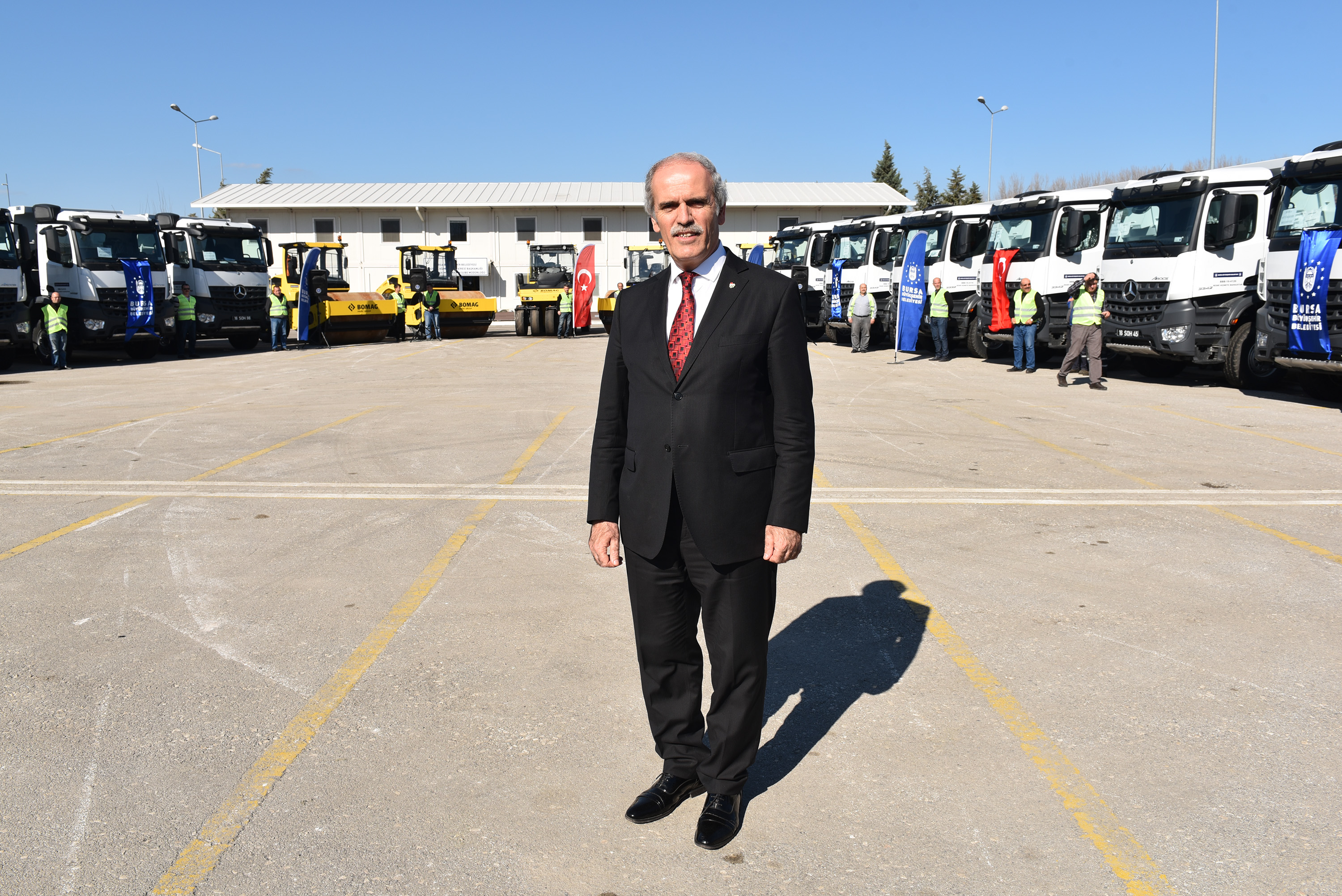 Büyükşehir Belediye Başkanı Recep Altepe, iş makinelerinin bir ilçeden başta bir ilçeye taşınmasıyla yaşanan zaman kaybının önüne geçmek amacıyla merkez dışında 10 ayrı bölgede şantiyeler oluşturduklarını belirterek, tüm şantiyeleri de yeni hizmet araçlarıyla donattıklarını söyledi. Toplam 1070 mahalleye gece gündüz hizmet götürdüklerini dile getiren Başkan Altepe, “Hizmetin aksamadan, sağlıklı bir şekilde sunulması için güçlü araç parkına ihtiyaç var. Biz de ‘alet işler el övünür’ mantığıyla araç filomuzu her geçen gün sağlamlaştırıyoruz. Elimizi güçlendirecek bu makinalarla hizmeti 1070 mahallemize en iyi şekilde götürmek istiyoruz. Tüm ilçelerimiz, Bursamız için hayırlı uğurlu olsun” dedi.