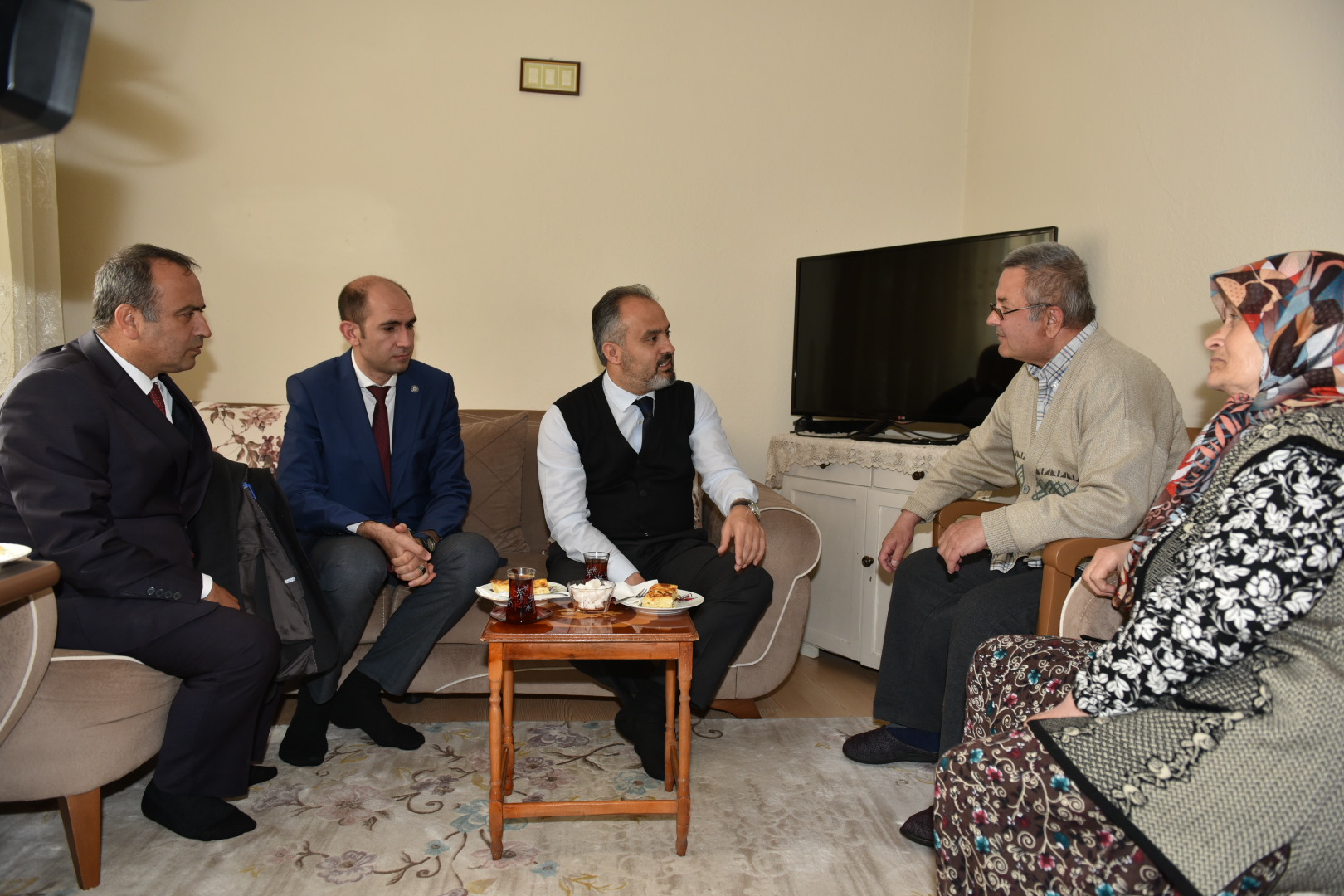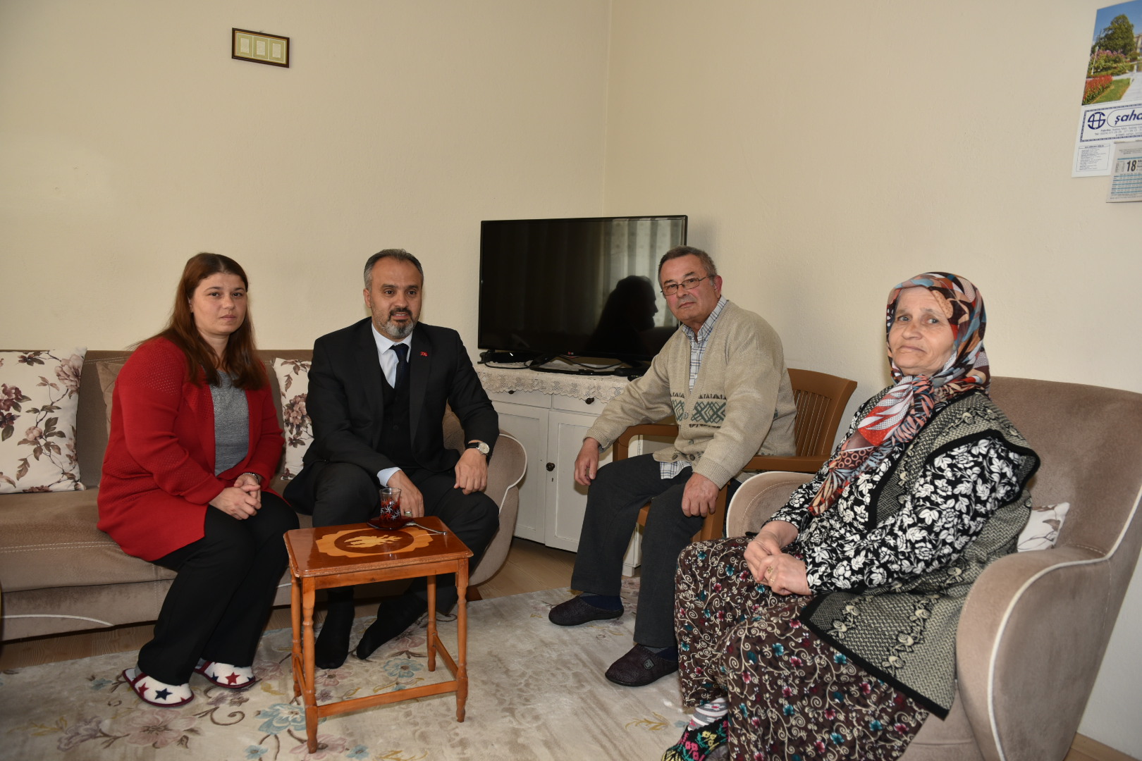 Bursa Büyükşehir Belediye Başkanı Alinur Aktaş, 2016 yılı Mayıs ayından bu yana evde hasta bakım desteği alan Veysel Türer’i evinde ziyaret etti. Türer’e “Geçmiş olsun” diyen ve sağlık durumuyla ilgili bilgi alan Başkan Aktaş, Büyükşehir Belediyesi’nin 17 ilçe ve 1058 mahallede 3 milyon nüfusa hitap eden önemli çalışmalar yaptığını belirterek, “İnsanların hayatına dokunmaya çalışıyoruz. Özellikle evde bakım hizmetleriyle ilgili önemli çalışmalarımız var. Belki eşimizin, dostumuzun, komşumuzun sağlık sıkıntılarını birebir hissedemiyor olabiliriz ancak onların hastaneye ulaşımı, bakım ve tedavileriyle ilgili tüm noktalarda evde bakım hizmetleriyle destek oluyoruz” dedi.
