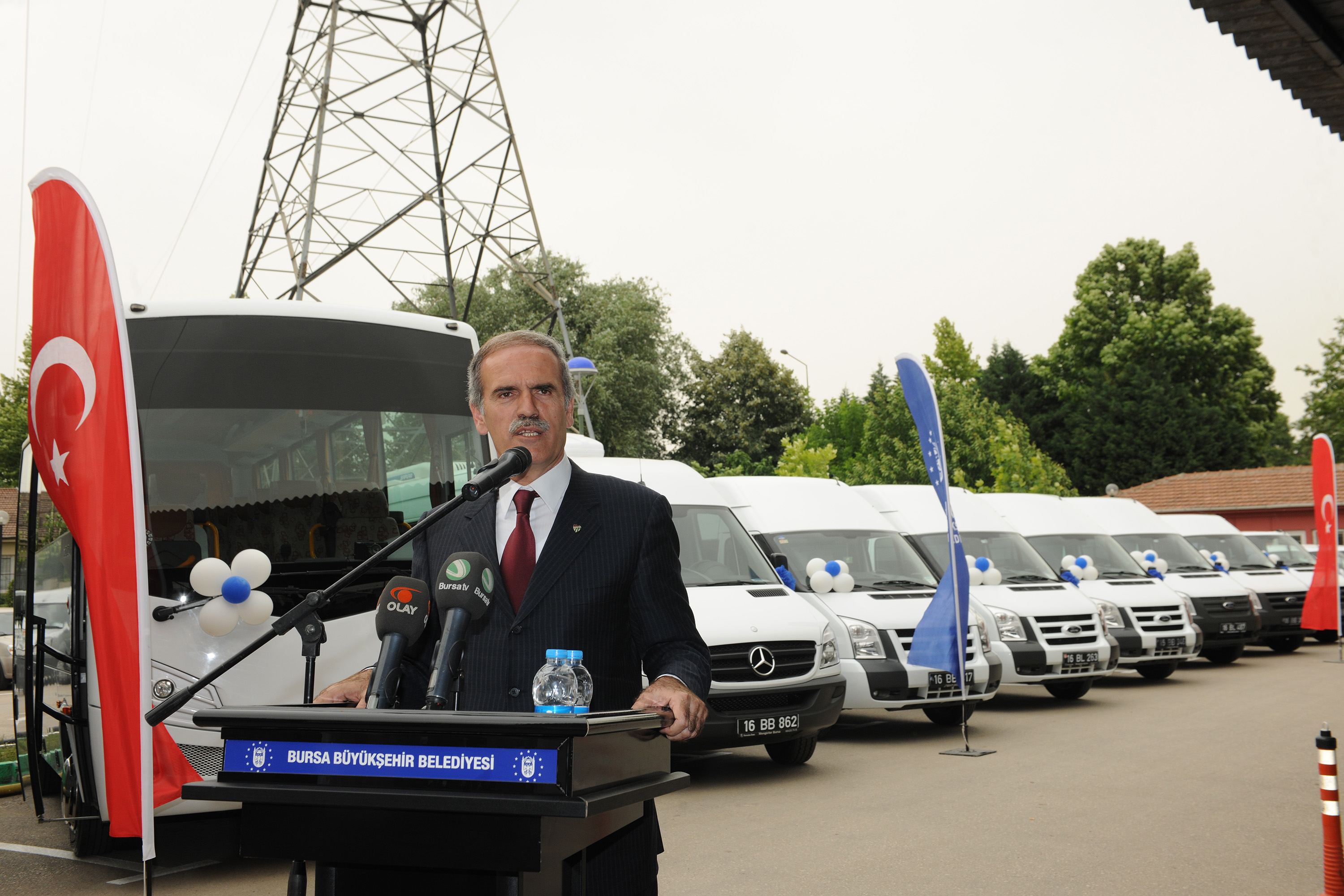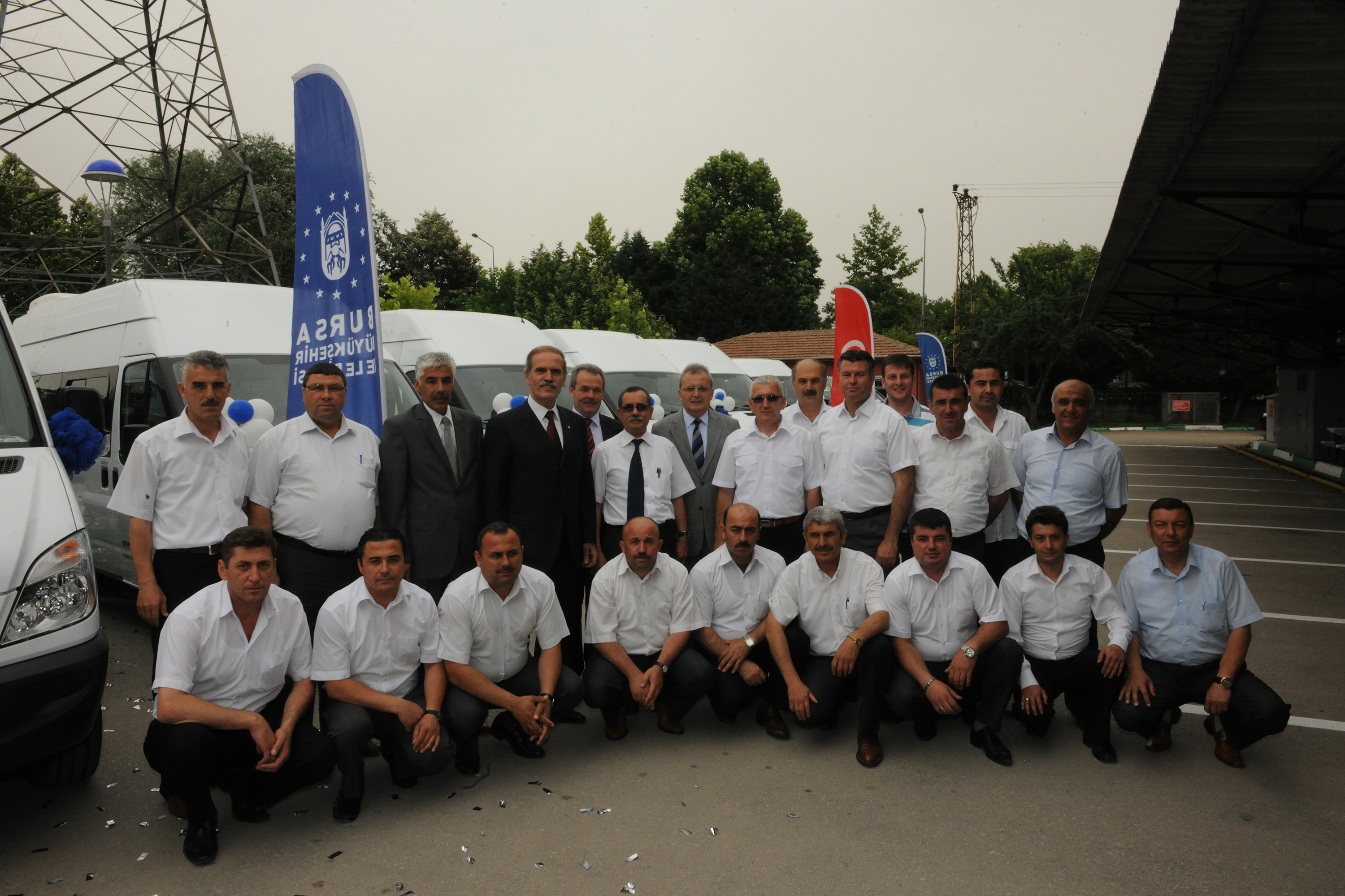 Bursa’nın daha sağlıklı, yaşanabilir ve ulaşılabilir bir kent olması amacıyla sadece kent merkezinde değil, mücavir alan sınırları dışındaki tüm ilçelere alt yapıdan çevreye, tarihi ve kültürel mirastan sosyal projelere kadar her alanda hizmet götüren Büyükşehir Belediyesi, bir taraftan araç filosunu da güçlendirmeye devam ediyor. Son 4 yıl içinde 11 milyon TL’lik yatırımla hizmet birimlerine 87 hizmet aracı kazandıran Büyükşehir Belediyesi, 1,5 milyon TL’lik 15 yeni aracı daha bünyesine kattı. Destek Hizmetleri Daire Başkanlığı bünyesinde kullanılacak olan otobüs, minibüs ve kamyonetlerden oluşan 15 yeni araç, Acemler Saha Amirliği’nde düzenlenen törenle hizmete alındı.