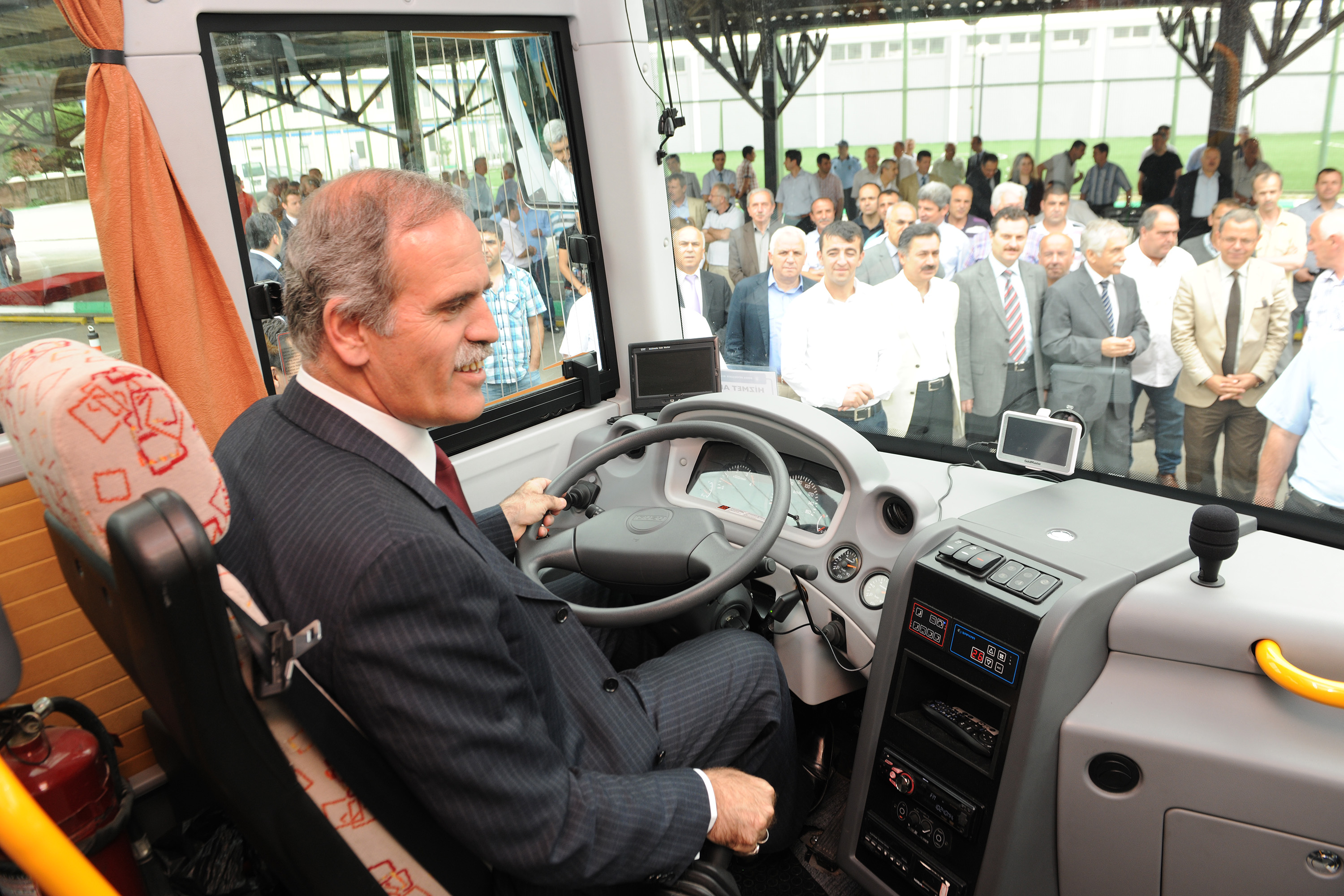 Daha sonra kurdeleyi keserek, araları hizmete alan Başkan Altepe, direksiyonuna geçtiği küçük otobüsle ilk turu da kendisi attı.