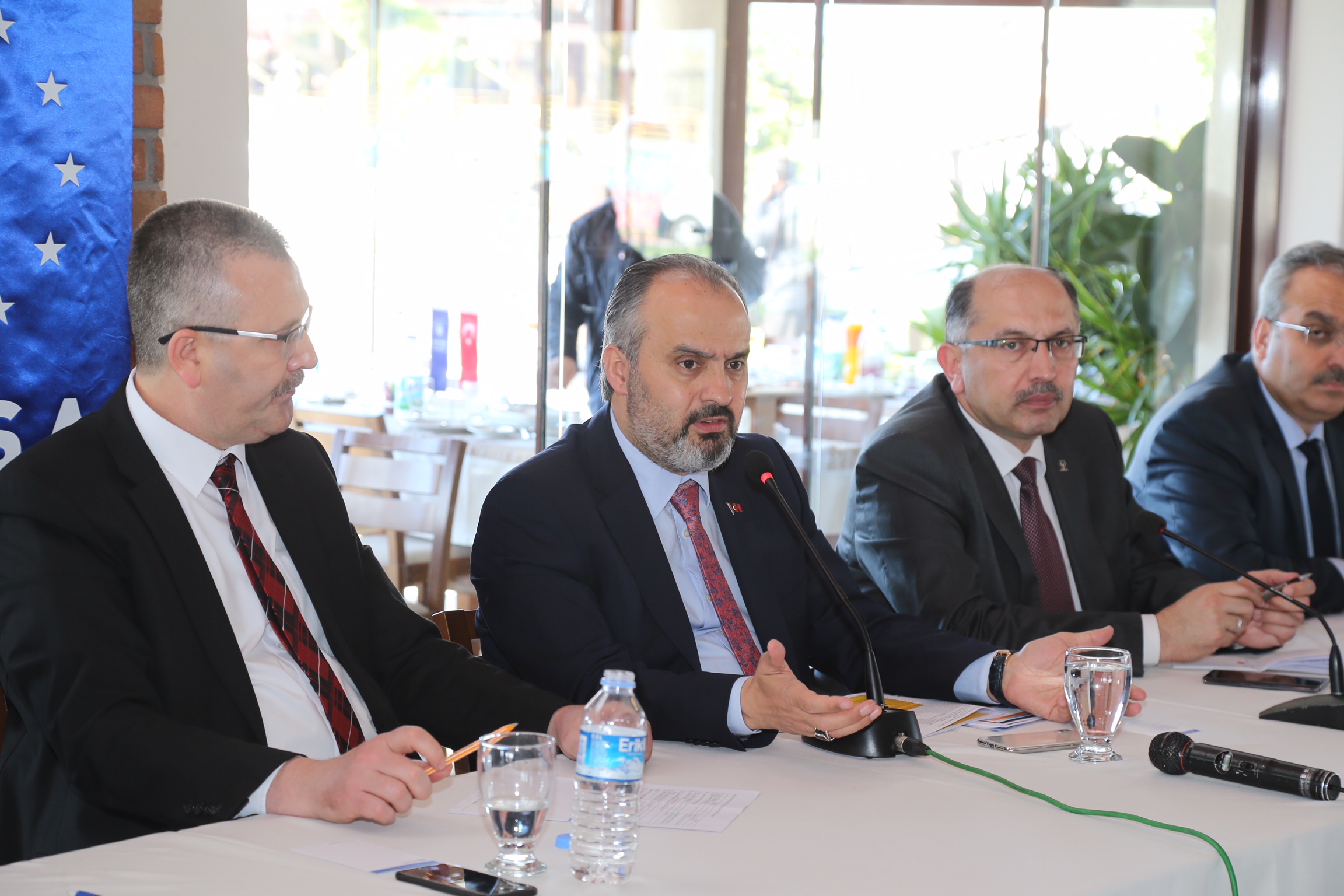 Bursa’nın dinamik bir şehir olduğunu vurgulayan, heyecanla ve kararlı bir şekilde çalıştıklarını söyleyen Başkan Alinur Aktaş, “Kentin her köşesini karış karış tarayıp neler yapılacağını değerlendiriyoruz. Daha önce yerel yöneticilerle görüşmüştük ama bu kez 17 ilçede de demokrasinin uç beyleri muhtarlarımızla bir araya geliyor, sıkıntıları dinliyoruz. 1058 mahalle muhtarının bulunduğu Bursa’mızda nüfus da her geçen yıl artıyor. Çalışmalarımızda öncelikli ihtiyaçlara dikkat ediyoruz” diye konuştu.