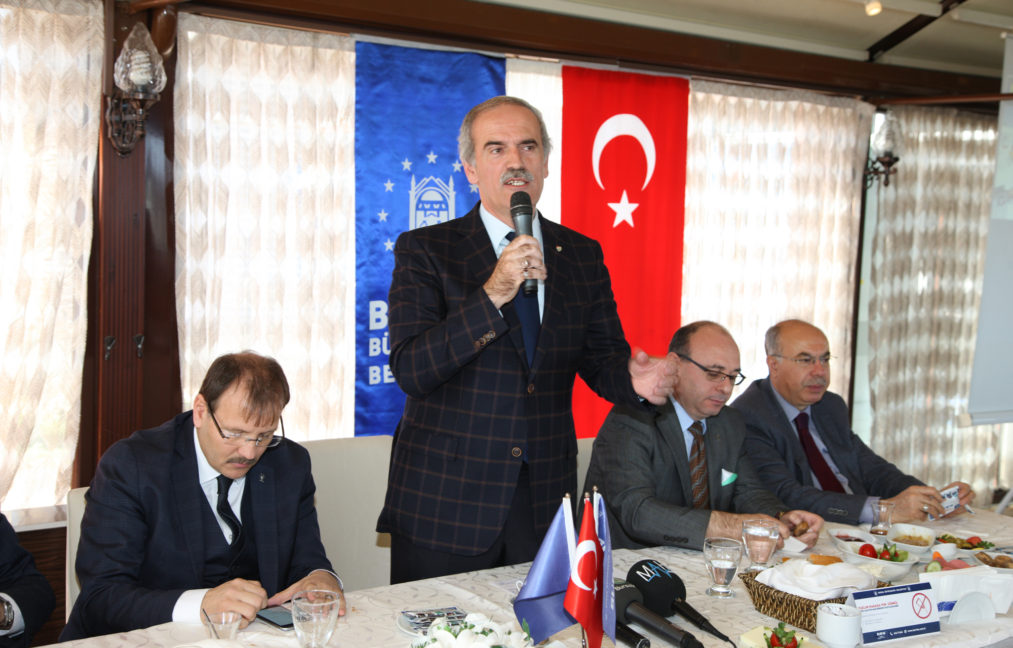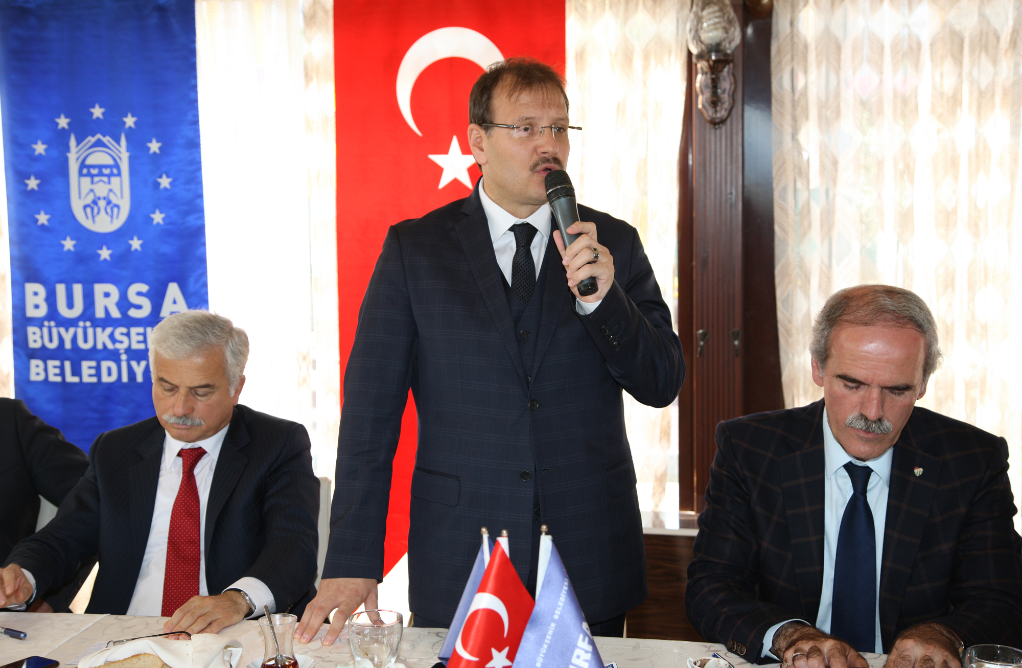 Bursa’yı geleceğe taşıyacak projeleri bir bir hayata geçirirken tüm ilçelerde de altyapıdan ulaşıma, tarihi mirastan kırsal kalkınmaya kadar her alanda önemli yatırımları hayata geçiren Büyükşehir Belediye Başkanı Recep Altepe, Mudanya Sosyal Tesisleri’nde Mudanyalı muhtarlarla buluştu. AK Parti Milletvekili Hakan Çavuşoğlu’nun da katıldığı toplantıda Büyükşehir Belediyesi’nin son 1,5 yıl içinde Mudanya’ya yaptığı yatırımlar hakkında bilgiler veren Başkan Altepe, sahil düzenlemeden ilçe merkezine ve köylerde kırsal kalkınmaya kadar her alanda yoğun bir çalışma temposu içinde olduklarını vurguladı.
