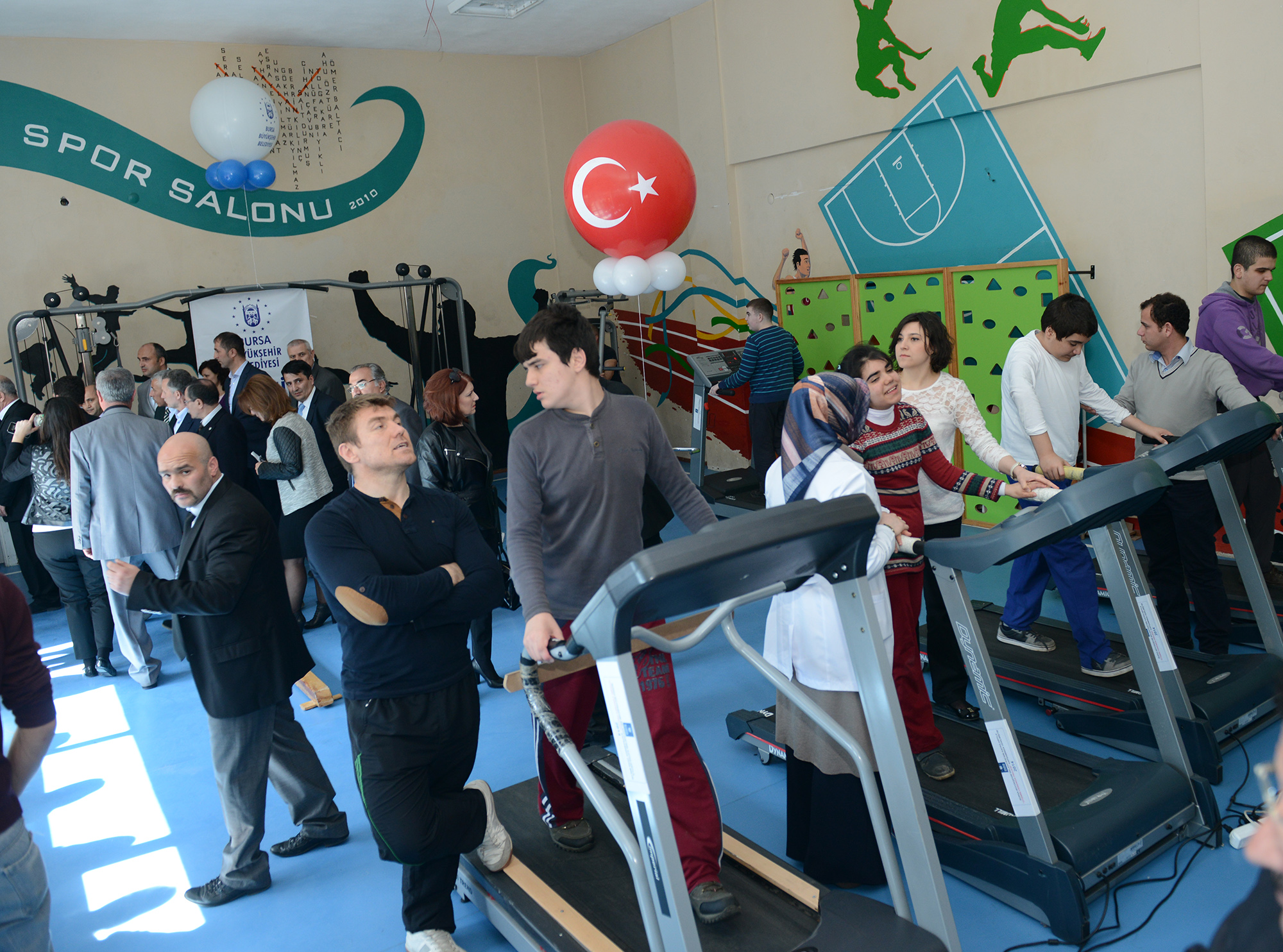 Büyükşehir Belediyesi sosyal sorumluluk projelerine bir yenisi daha ekleyerek BTSO Eğitim Vadisi içinde bulunan Otistik Çocuklar Eğitim Merkezi’nde içinde koşu bandı, bisiklet, jimnastik aletleri ve vücut gelişimine katkı sağlayacak aletlerin bulunduğu spor salonu Büyükşehir Belediye Başkanvekili Atilla Ödünç’ün katılımıyla hizmete açıldı. Hizmete açılan spor salonundan burada eğitim gören 250’ye yakın otistik öğrencinin eğitmenler nezaretinde faydalanacağını belirten Ödünç, “Büyükşehir Belediyesi bugüne kadar destek verdiği sosyal sorumluluk projeleriyle Türkiye’deki diğer belediyelere örnek olmuştur. Otizmli gençlerimizin hem bedenen hem de ruhen gelişimine katkı sağlamak bizlerin en önemli görevleri arasındadır. Emeği geçen herkese teşekkür ediyorum” şeklinde konuştu.