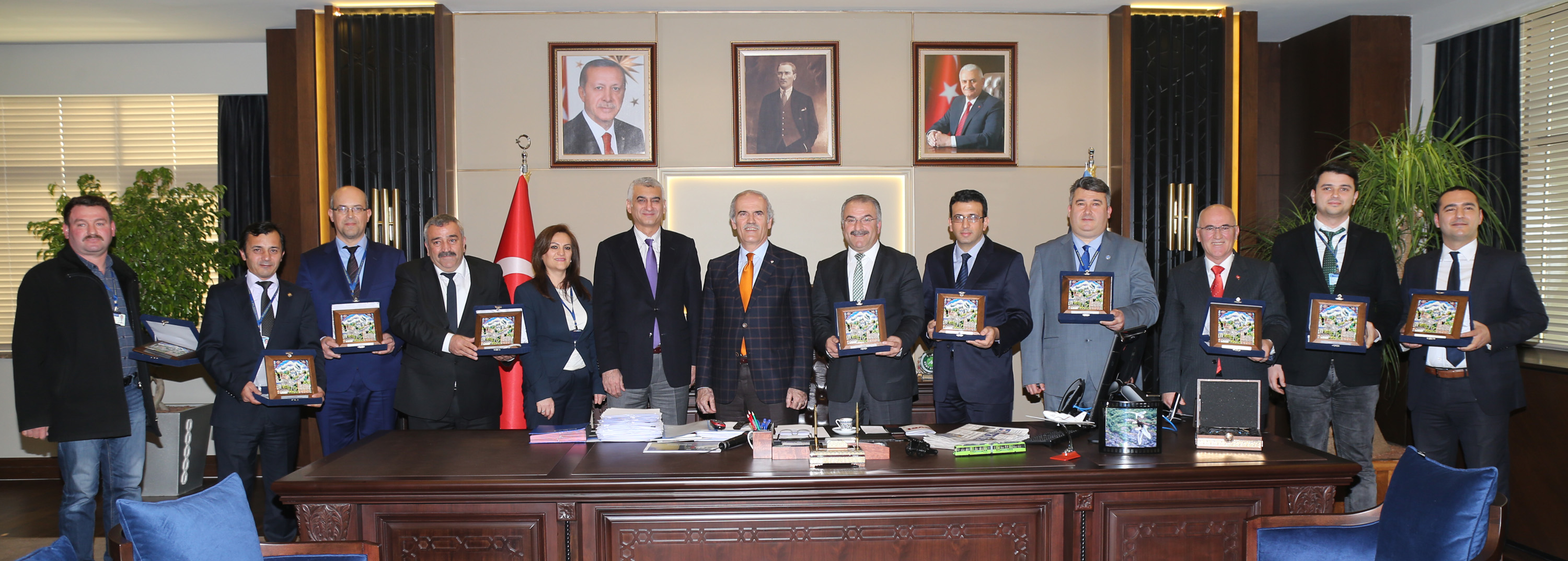 Bursa Büyükşehir Belediye Başkanı Recep Altepe, ‘Çek Paylaş Birlikte Güzelleştirelim’ projesi kapsamında, kentte karşılaştıkları sıkıntıları whatsapp ihbar hattı ile Büyükşehir Belediyesi’nin ilgili birimlerine fotoğraflı olarak ulaştıran ve sorunlara çözüm olma noktasında en çok ihbarı yapan personeli plaketle ödüllendirdi. Başkan Altepe, ‘Büyükşehir’in gurur tablosu’ dediği heyetle, Büyükşehir Belediyesi Hizmet Binası’ndaki makamında bir araya geldi.