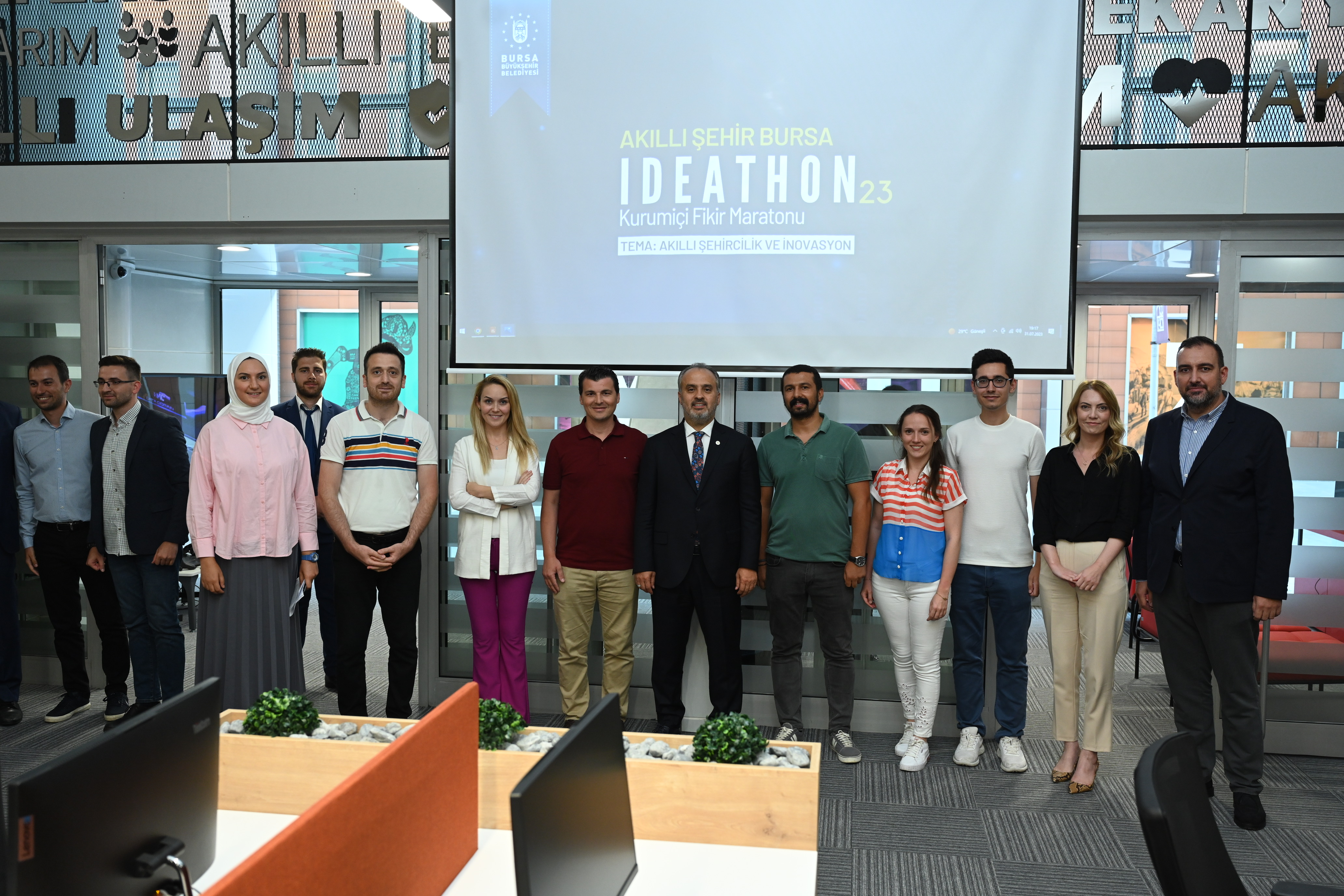 Bursa Büyükşehir Belediyesi tarafından kurum içi çalışanlarının gelişimlerinin önündeki engelleri tanımlayarak, ortaya çıkan engellere birlikte çözümler üreterek inovasyon için bir zemin oluşturmak, kurum bütçesini çözüm için daha tasarruflu kullanmak, çalışanların özgüvenlerini artırıp problemlere alışılmışın dışında inovatif çözümler bulmak amacıyla düzenlenen İdeathon Maratonu sona erdi. 26 mayısta 38 takımın ön başvuru yaptığı ve jüri tarafından 23 takımın proje değerlendirilmesine alındığı maratonda tematik eğitimler, mentör görüşmeleri ve proje tamamlama safhalarının ardından dereceye giren takımlar belli oldu.