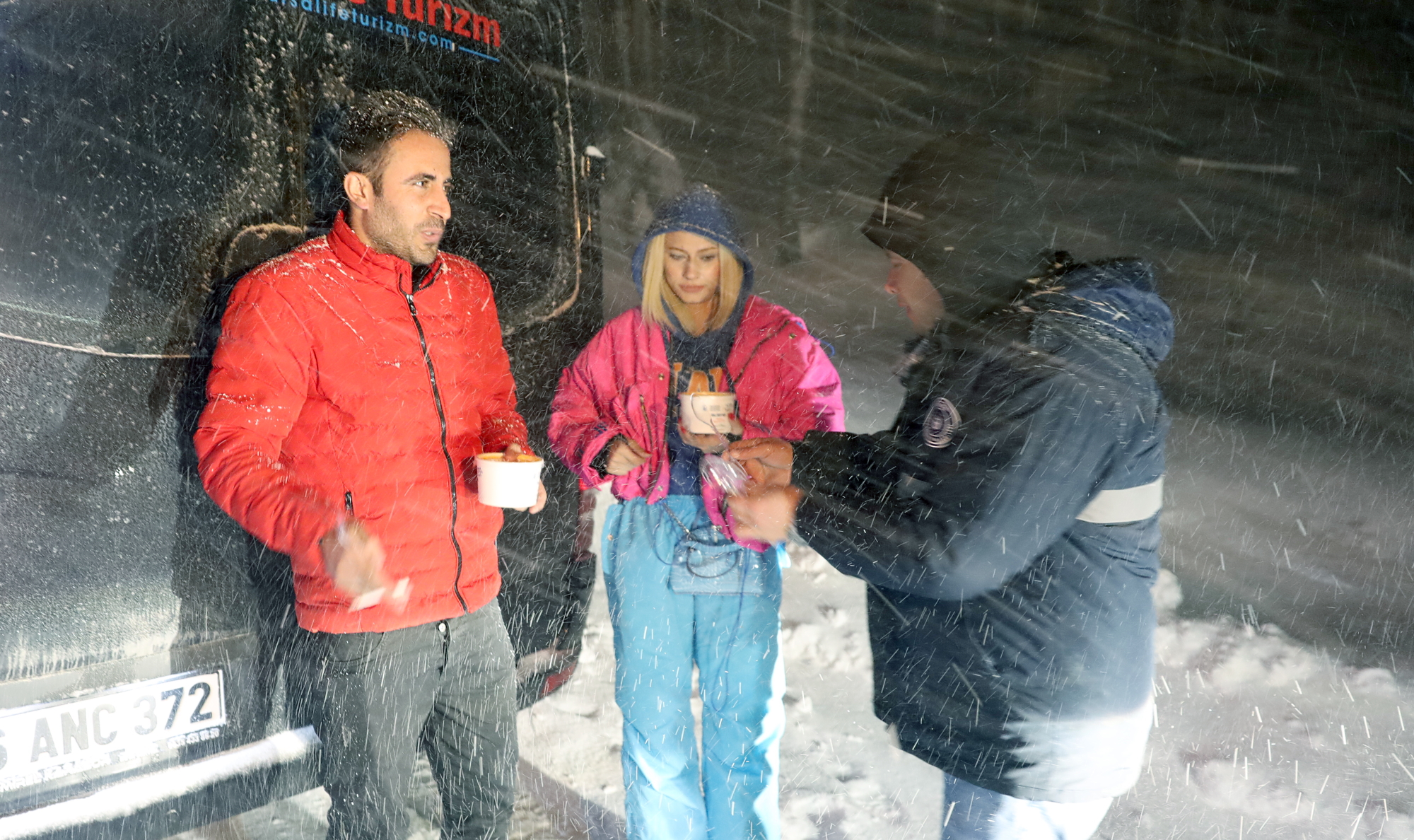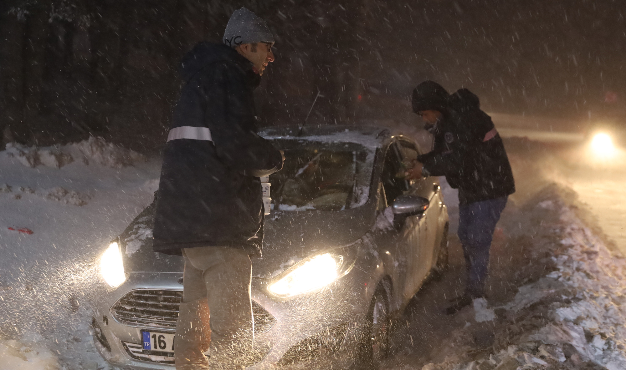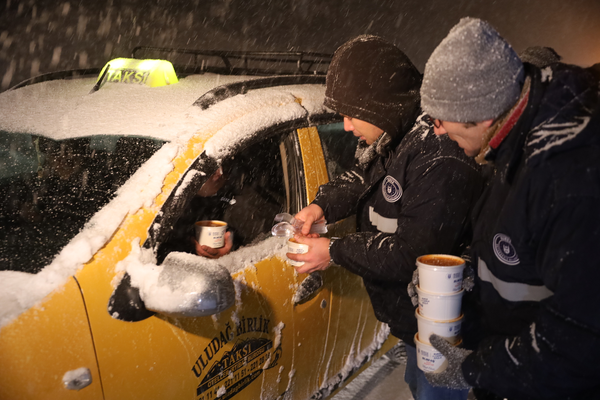 Hafta sonu tatilini Uludağ’da geçiren vatandaşların eş zamanlı dönüşe geçmeleri, yolda yığılmalara neden oldu. Özellikle Oteller Bölgesi-Milli Parklar arasındaki bölümde ‘yol açık olmasına rağmen’ bazı araçların kontrolden çıkıp kayması yüzünden trafik durma noktasına geldi. Büyükşehir ve Karayolları ekipleri, ‘yol açma çalışmasının yanında’ kontrolden çıkıp kara saplanan araçların kurtarılması için yoğun çaba harcadı. Bu arada, BURFAŞ ekipleri de yolun kapalı olduğu sıralarda araçlardaki vatandaşlara sıcak çorba ikramında bulundu. Yol boyunca devriye atan BURFAŞ ekipleri, dondurucu soğuk ve tipiye rağmen vatandaşların içini ısıtmak için yoğun çaba harcadı.