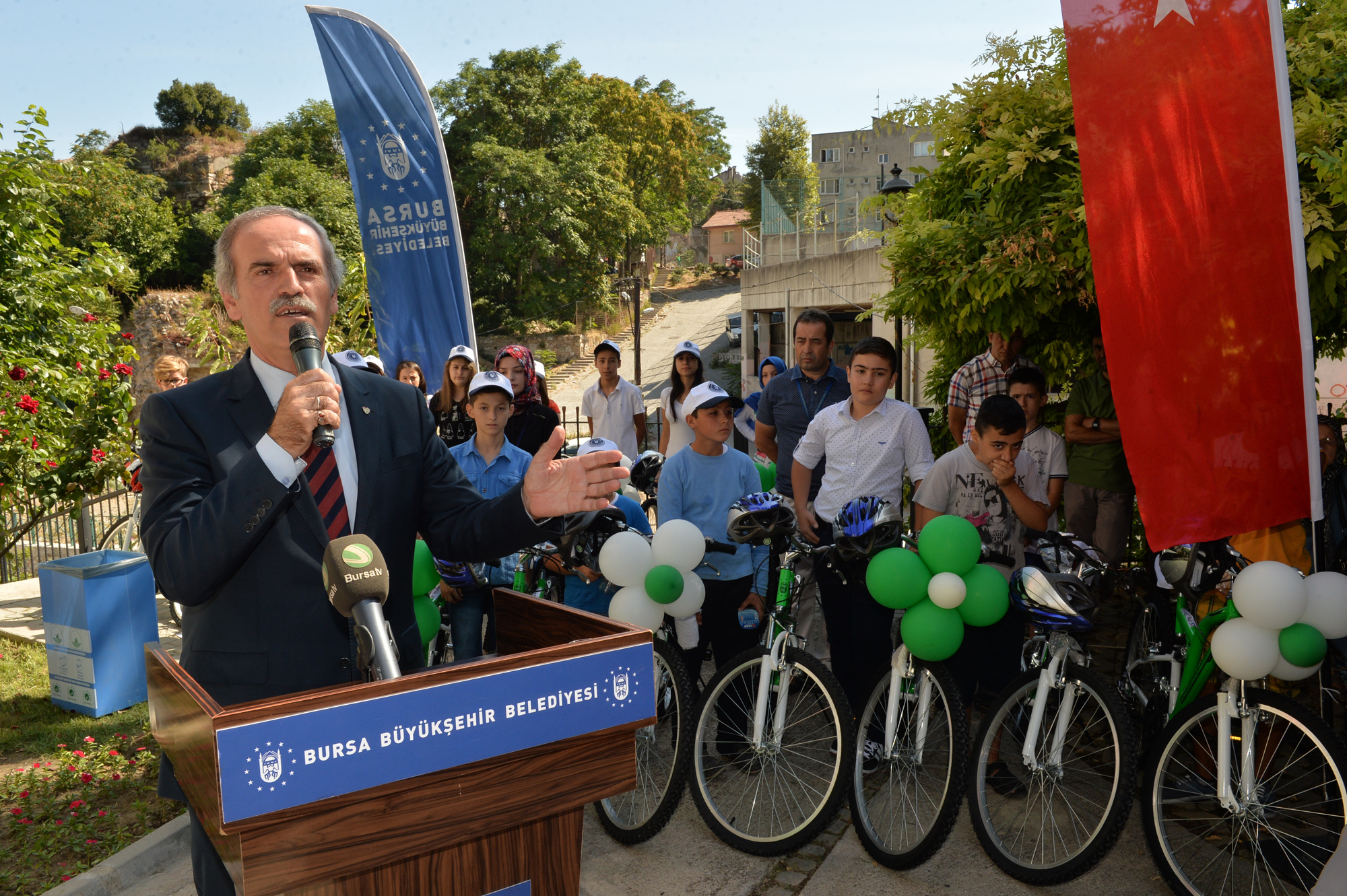 Bursa’nın ve Türkiye’nin geleceğini bugünün gençlerinin şekillendireceğini vurgulayan Başkan Altepe, son dönemde yaşananların tüm ülkeye acı verdiğini söyleyerek, “Bursa, örnek olmaya devam ediyor. Kentlilik bilinci, Bursa’yı tanımak, Bursa ile ilgili sorumluluk duymak ve Bursa’nın yıldızını parlatmak hepimizin görevi. Bugün öğrencilerimizin heyecanına ortak olurken, şehit haberleriyle de yüreklerimiz yanıyor, canımız acıyor. Büyükşehir Belediyesi olarak Bursa’daki şehit ve gazilerin çocuklarına bisiklet hediye edeceğiz” diye konuştu.