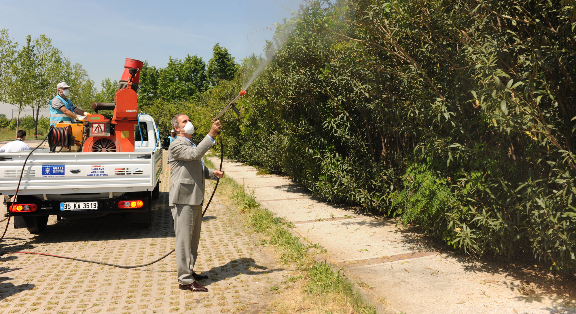 Başkan Altepe, daha sonra ilk ilaçlama çalışmasını kendi yaparak, önemli bir çalışma döneminin startını vermiş oldu.