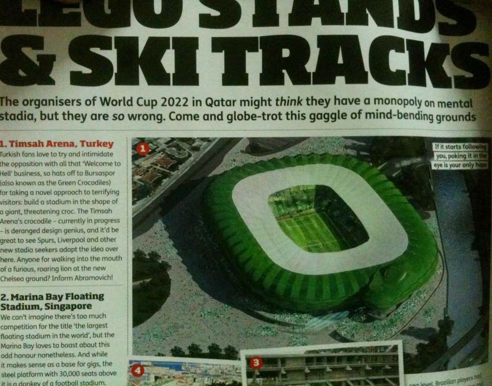 Bursaspor’un inşaatı süren yeni stadyumu Büyükşehir Stadı, İngiltere’de bir spor dergisinde geniş yer buldu.Yeşil-beyazlı camianın sabırsızlıkla beklediği ve kaba inşaatının büyük oranda tamamlandığı Büyükşehir Stadı, dış ülkelerde de ilgiyle takip edilmeye devam ediyor. Özellikle stadyumun çatı bölümünün Timsah figüründen oluşması büyük beğeni toplarken, 45 bin kişilik stadyum, İngiltere’de yayın yapan Four Four Two isimli bir spor dergisinde de geniş yer buldu. Büyükşehir Stadından da övgü dolu sözlerle bahsedilen haberde, yapımının devam ettiği ve korkunç bir görüntüye sahip olduğu belirtilerek, rakipler için büyük tehdit oluşturacağı kaydedildi.