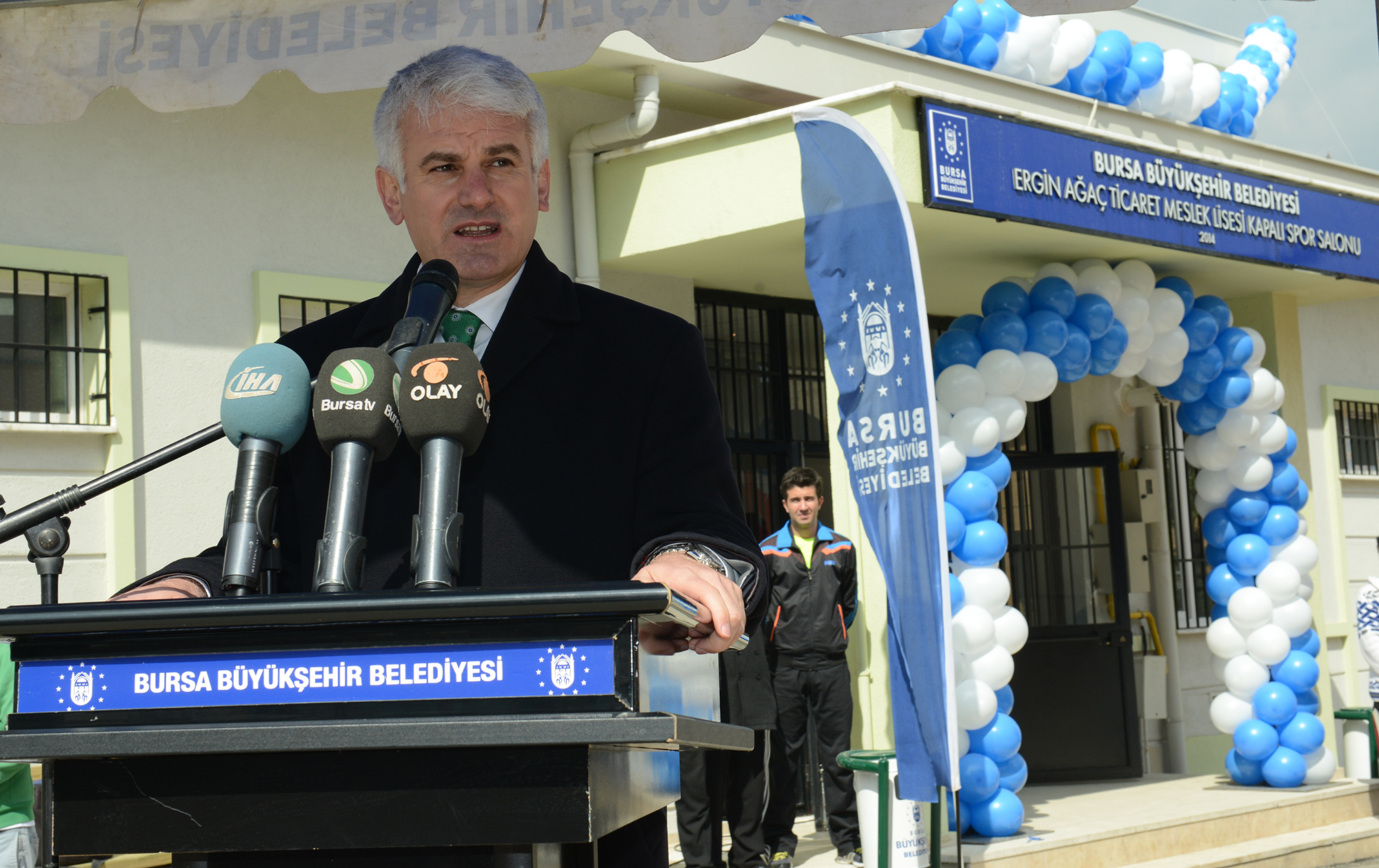 - BURSA BÜYÜKŞEHİR BELEDİYESİ TARAFINDAN YAPTIRILAN ERGİN AĞAÇ TİCARET MESLEK LİSESİ SPOR SALONU TÖRENLE HİZMETE AÇILDI.