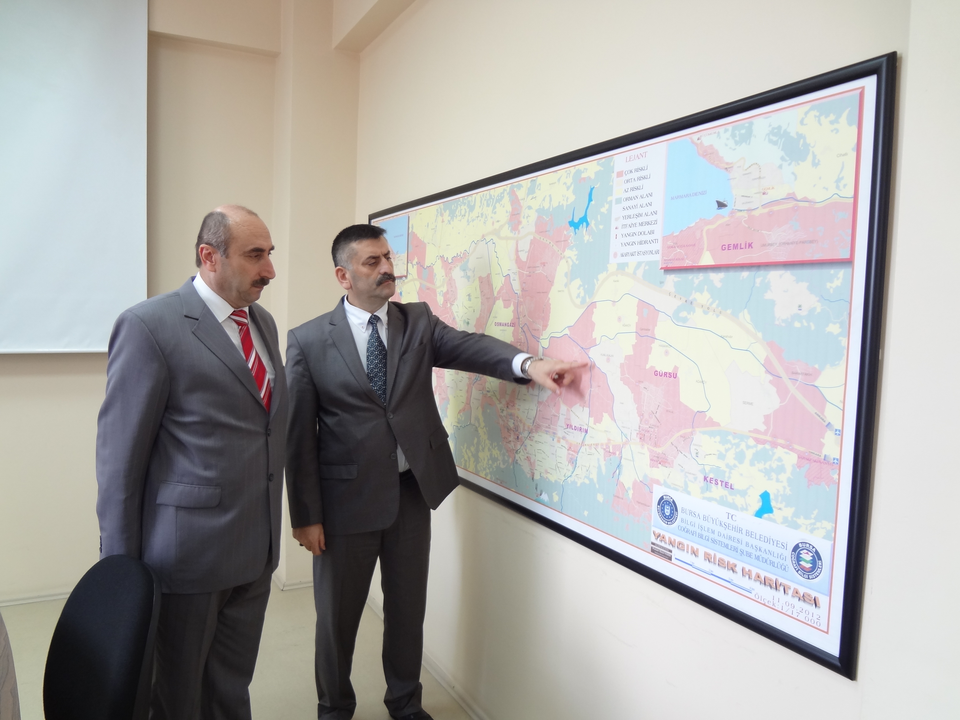 Bursa’da 2009 yılında yangın afetine muhtemel olan sahalar belirlenerek Büyükşehir Belediye Meclisi tarafından onaylandı. Yangın risk haritası hazırlanarak haritada çok riskli, orta riskli ve az riskli bölgeleri, itfaiyenin kullandığı yolları, kavşakları, batçıkları, yangın dolapları ve mevcut yangın hidrantları haritaya işlendi. Yine akaryakıt istasyonları, kamu ve özel itfaiye teşkilatlarının yerleri belirlendi. Ayrıca hastaneler ile sanayi bölgelerine harita yer verildi. Yani tüm hayati önem taşıyan bilgiler haritada yer aldı. Yangın Risk Haritası, olası can ve mal kayıplarının en aza indirilmesi noktasındaki plan çalışmalarına katkı sağlayacak. Ayrıca buralarda olacak itfaiye olaylarına kısa sürede ulaşılarak etkin müdahale imkanı sunulacak. Uzun yıllar hizmet verecek yangın risk haritası hazırlanmış oldu. Harita sayısal ortama yüklenerek itfaiye merkezinde de anlık takip imkanı sağlandı.