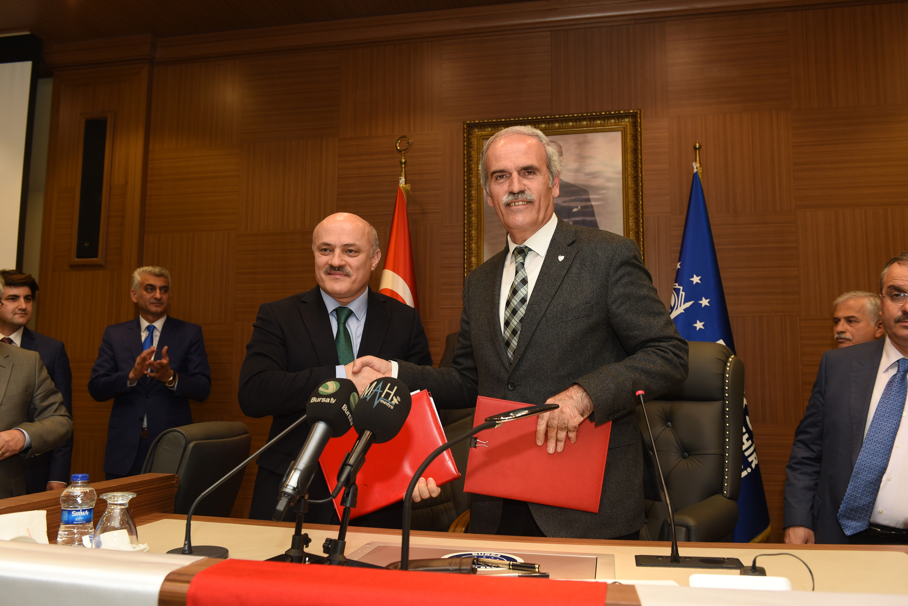 - BÜYÜKŞEHİR VE BUSKİ ÇALIŞANLARININ SÖZLEŞME SEVİNCİNE ORTAK OLAN VE 2 YILLIK YENİ ANLAŞMANIN HAYIRLI OLMASI DİLEĞİNDE BULUNAN BÜYÜKŞEHİR BELEDİYE BAŞKANI RECEP ALTEPE, BÜYÜKŞEHİR BELEDİYESİ’NİN HERKESİN ÇALIŞMAK İSTEDİĞİ KURUM OLDUĞUNU VURGULAYARAK, KAYNAKLARI YERİNDE KULLANARAK BURSA İÇİN DAHA FAZLA YATIRIM YAPMAYA DEVAM EDECEKLERİNİ SÖYLEDİ.