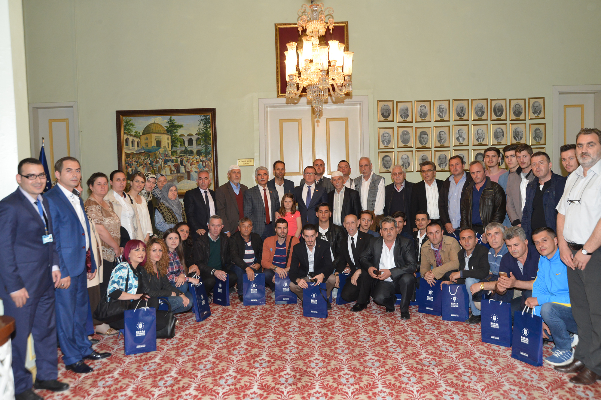 Kosova Üsküp Türkleri Kültür ve Dayanışma Derneği’nin organizasyonu ile Bursa’ya gelen Makedonya’nın Kumanova kentinde yaşayan şehit aileleri, Bursa programı kapsamında Büyükşehir Belediyesi’ni de ziyaret etti. Heykel’deki tarihi binada gerçekleşen ziyarette, Kumanovalı davetlileri, Büyükşehir Belediyesi Başkanvekili Abdülkadir Karlık ağırladı. Kosova Üsküp Türkleri Kültür ve Dayanışma Derneği Recep Gündüz’ün de katıldığı ziyarette konuşan Başkanvekili Karlık, bir balkan şehri olan Bursa’da Kumanovalıları ağırlamaktan mutluluk duyduğunu söyledi. Yakınlarını sırplarla savaşta şehit veren Kumanovalılara seslenen Karlık, “Bursa’daki her iki evden birinde mutlaka balkanlarda akrabası olan biri vardır. Bizler et ve tırnak gibiyiz. Ortak tarihi derinliğimiz ve kültürel bağlarımız var. Bursa Büyükşehir Belediyesi olarak Balkanların her köşesinde yatırımlarımız ve kültürel etkinliklerimiz var. Bizler her zaman sizlerin yanındayız” diye konuştu.