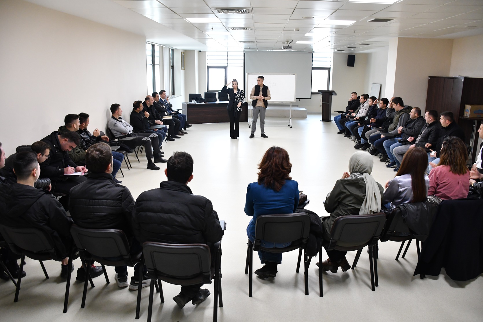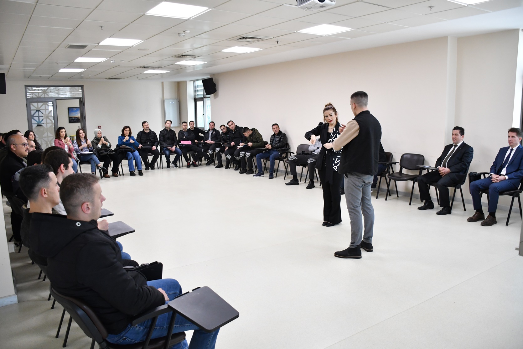 Bursa’yı daha sağlıklı ve yaşanabilir bir kent haline getirmek amacıyla ulaşımdan çevreye, altyapıdan spora kadar her alanda önemli projeleri hayata geçiren Büyükşehir Belediyesi, bu hizmetlere erişimin önündeki engelleri de bir bir kaldırıyor. Büyükşehir Belediyesi hizmet birimlerine gelen işitme engelli vatandaşlara daha etkili hizmet verilebilmesi amacıyla İnsan Kaynakları ve Eğitim Dairesi Başkanlığına bağlı Eğitim Şube Müdürlüğü tarafından Zabıta Destek Hizmetleri Şube Müdürlüğü bünyesinde özel güvenlik görevlisi olarak çalışan personele yönelik işaret dili eğitimi düzenlendi. BUSMEK Türk İşaret Dili Eğitmeni Emel Camfener tarafından verilen eğitimler her hafta Pazartesi ve Salı günleri gerçekleştirilecek.