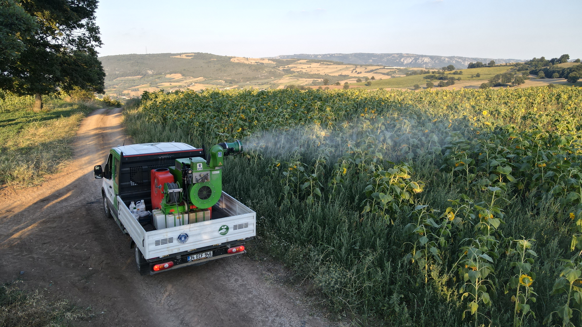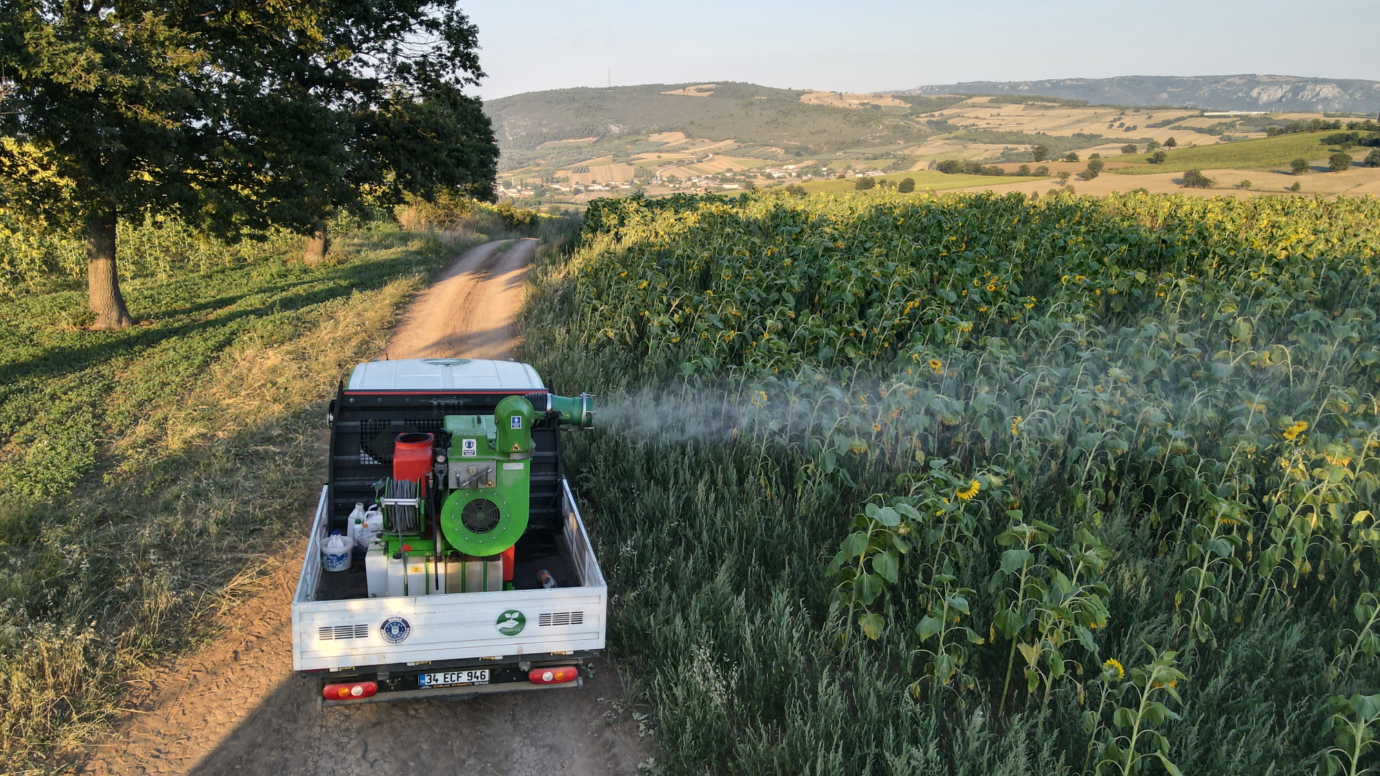 Bursa'nın 17 ilçesinde 231 ilaçlama personeli, 343 araç ve ekipman ile sinekle mücadele çalışmalarını aralıksız sürdüren Büyükşehir Belediyesi, çayır tırtılı ile mücadele için de devreye girdi. Bursa’da 170 bin dekar alanda ayçiçeği üretimi yapılırken, çayır tırtılı popülasyonunun 6 bin dekarlık alanda görüldüğü tespit edildi. Tarım İl Müdürlüğü ve ilçe belediyelerinin desteğiyle sürdürülen ilaçlama çalışmalarına, Büyükşehir Belediyesi de Tarım A.Ş. bünyesindeki ilaçlama araçlarıyla katılım sağlıyor.