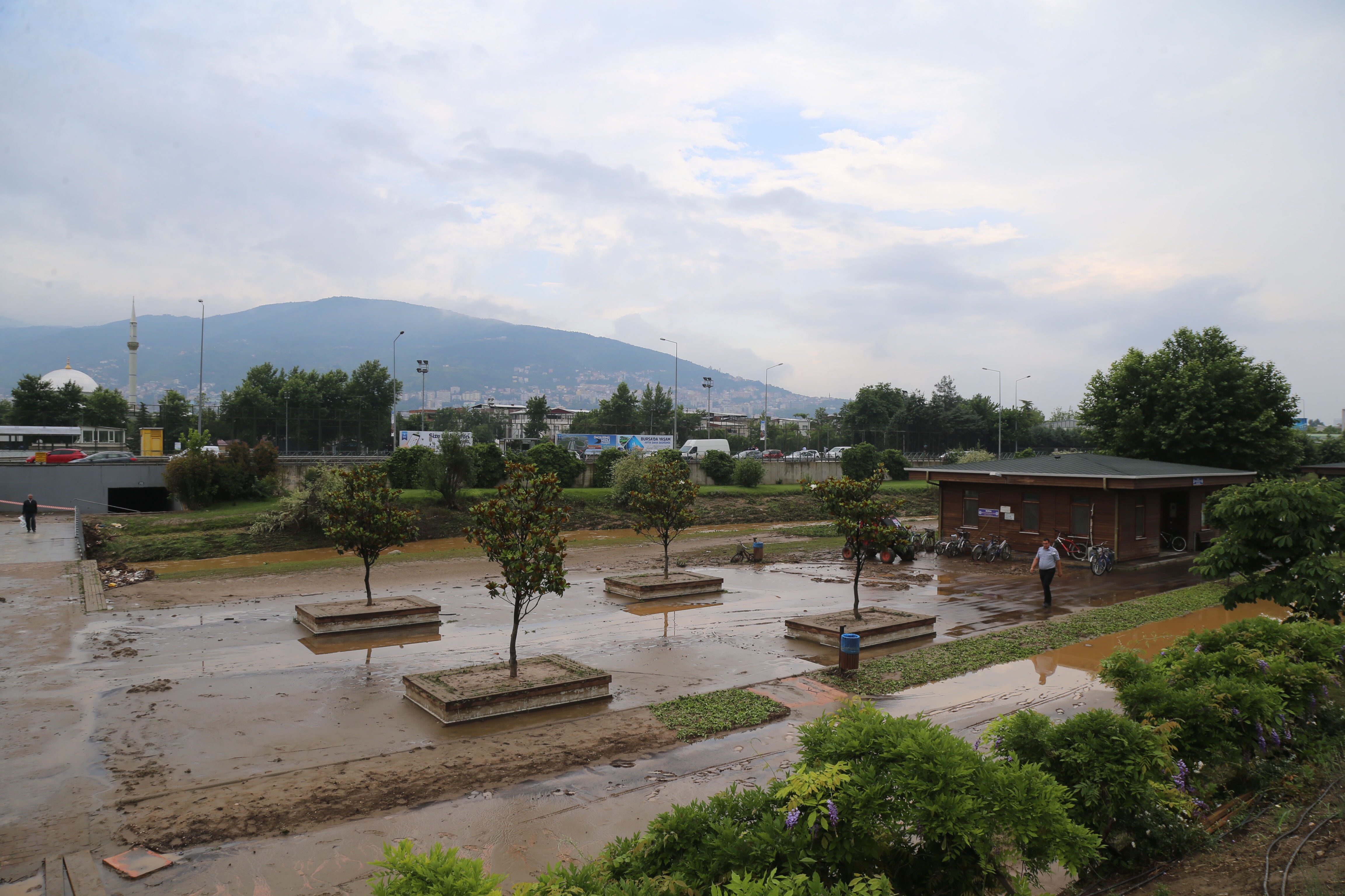 Bursa’da aniden bastıran sağanak yağış sonucu yaşanan sel felaketinin yaraları, tüm hızıyla sarılmaya çalışılıyor. Felaketin yaşandığı ilk günden itibaren tüm ekiplerini seferber eden Büyükşehir Belediyesi ve BUSKİ, mağduriyetlerin giderilmesi için aralıksız mesai harcıyor. Afetin yaşandığı ilk andan itibaren 50 iş makinesi ve 70 personelle olay yerinde olan BUSKİ, 36 araçla çalışmasına devam ediyor. Valilik, Büyükşehir Belediyesi, BUSKİ ve itfaiye ekipleri, afete karşı tam bir mutabakat halinde hareket ederken, zarar tespit çalışmaları ise sürüyor. Bu arada yarından itibaren 100 işçinin afet bölgesinde sahaya ineceği ve su, tadilat, temizlik gibi acil ihtiyaçların çözümü için çaba sarf edeceği bildirildi. Ayrıca Dikkaldırım bölgesinde vatandaşlara sıcak yemek de dağıtılacak.