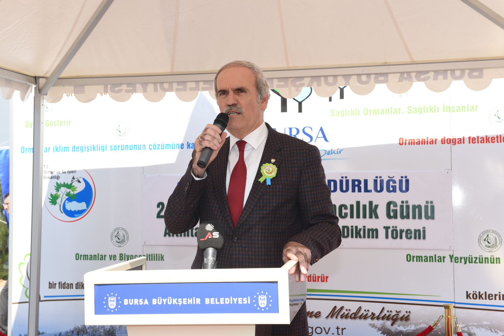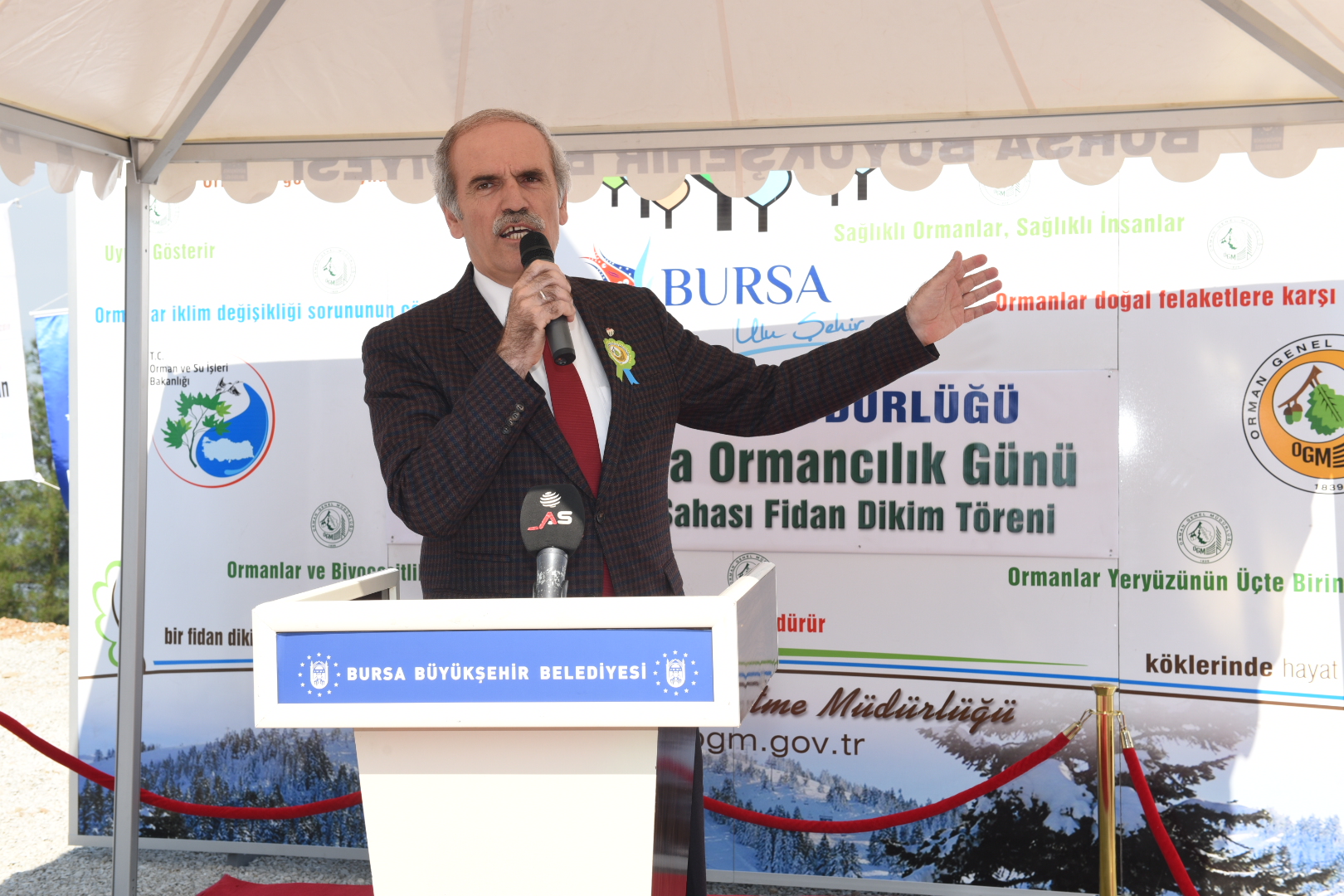 Büyükşehir Belediye Başkanı Recep Altepe, Bursa’nın yeşil kimliğinin vurgulandığı programda yaptığı konuşmada, kentin daha yaşanabilir ve sağlıklı bir şehir olması hedefiyle çalışmalarını sürdürdüklerini söyledi. Başkan Altepe, ‘21 Mart Dünya Ormancılık Günü’nde Altıntaş hafriyat alanının yeşillendirilmesinin Bursa için çok önemli bir adım olduğunu belirterek, “Yetersiz çevre bilinci, dikkatsizlik ve ihmalkârlık sonucu çıkan yangınlar ve daha birçok sebepten dolayı her yıl ormanların büyük bölümü yok oluyor. Ancak son yıllarda, Dünya Sağlık Örgütü’nün Türkiye’deki partneri ve Sağlıklı Kentler Birliği’nin de kurucusu olan Bursa’da, çevre konusunda özel bir hassasiyet gösteriliyor ve Türkiye’ye örnek çalışmalara imza atıyoruz” dedi.