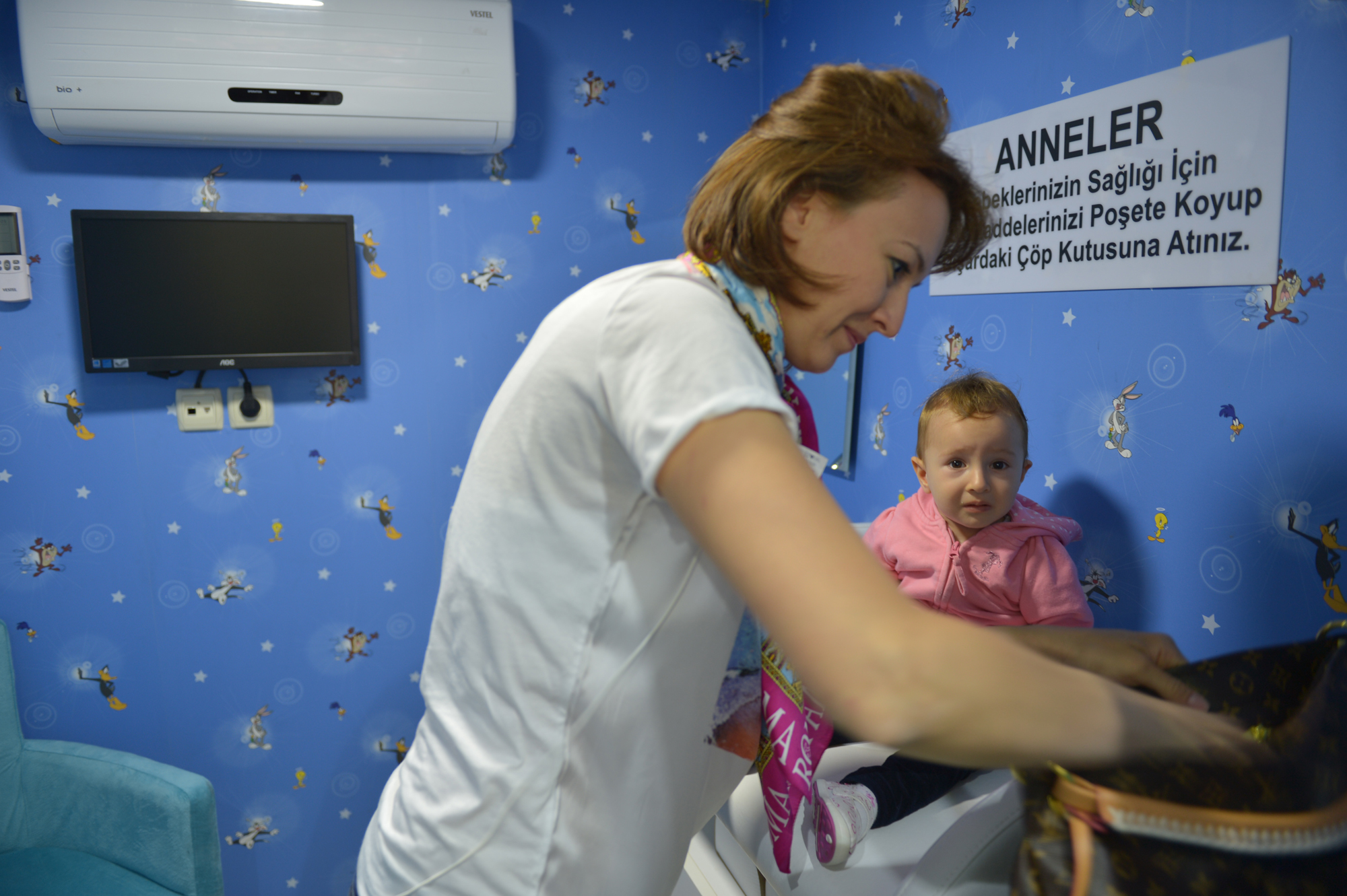 - Büyükşehir Belediyesi’nin vatandaşların yaşamlarını kolaylaştıran çalışmalarından biri olan ve en yoğun bölgelerden Cumhuriyet Caddesi üzerinde konumlandırılan ‘Bebek Bakım ve Emzirme Odası’, Türkiye’de yine bir ilk olma özelliği taşıyor.