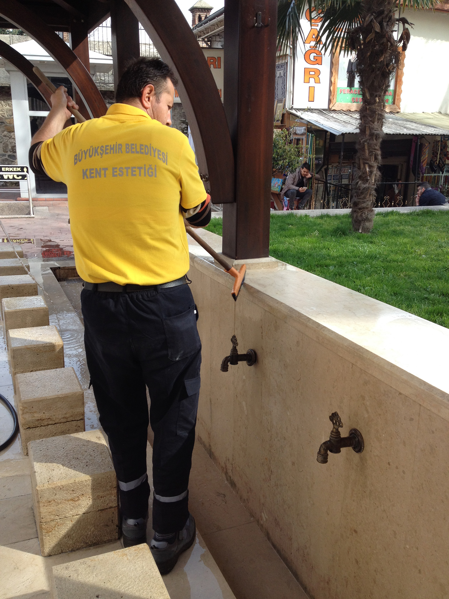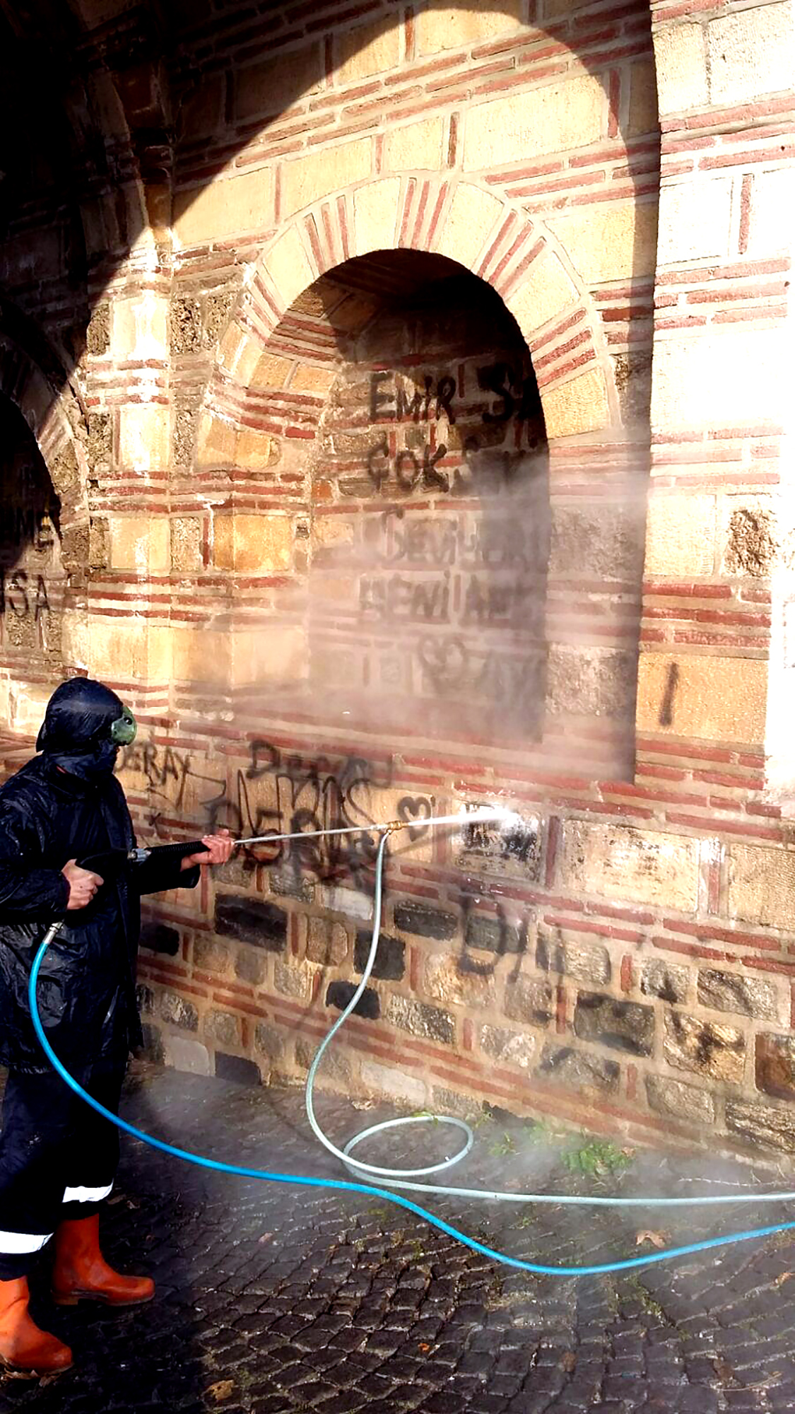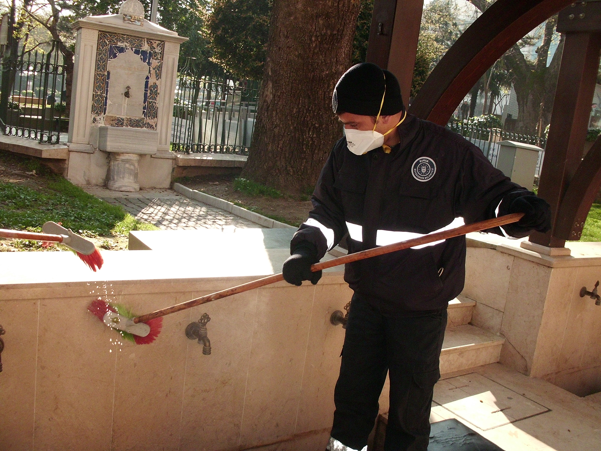 - ÇALIŞMALAR KAPSAMINDA TÜM OTOBÜS DURAKLARI SABUNLU SUYLA YIKANIRKEN, METRO DUVARLARI VE TARİHİ GÖRÜNÜMLÜ ÇEŞMELERİN TAMAMI TEK TEK TEMİZLENİYOR.