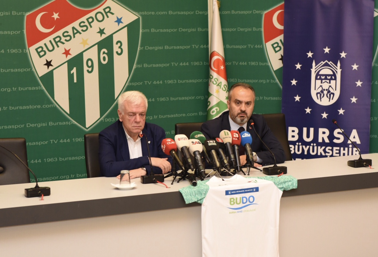 Süper Lig’in ilk haftasında yarın deplasmanda Fenerbahçe ile karşılaşacak olan Bursaspor’un forma göğüs sponsoru, Bursa Büyükşehir Belediyesi iştiraklerinden BURULAŞ'a bağlı Bursa Deniz Otobüsleri (BUDO) oldu. Sponsorluğa ilişkin açıklama, Büyükşehir Belediye Başkanı Alinur Aktaş ile Bursaspor Başkanı Ali Ay tarafından, İbrahim Yazıcı Tesisleri’nde yapıldı.