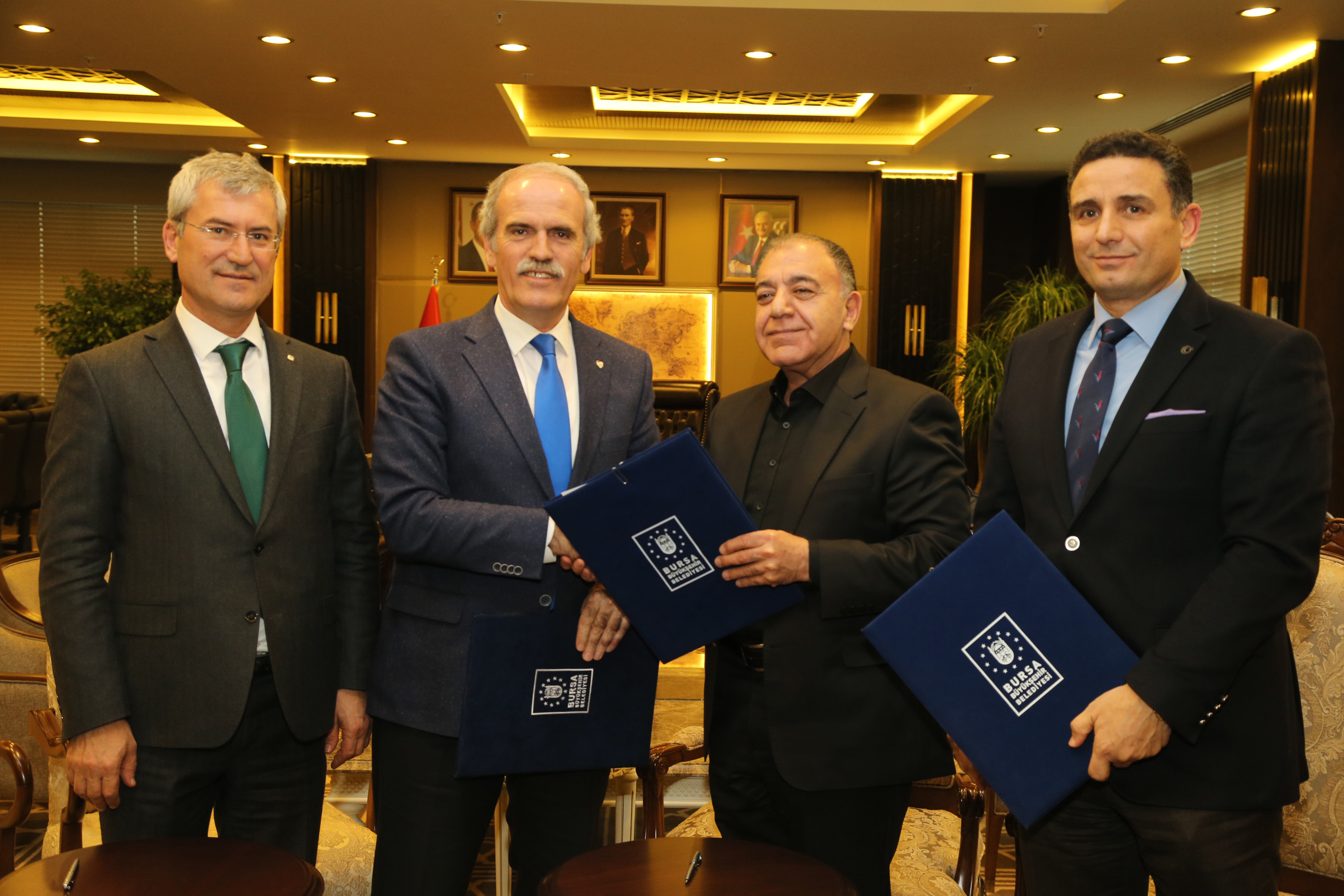 Büyükşehir Belediyesi, Bursa’yı daha yaşanabilir bir kent getirmek amacıyla yapılan çalışmalarda eğitim kurumlarını yenilemeye devam ederken, hayırseverlerin de destekleri sürüyor. Bursa Büyükşehir Belediye Başkanı Recep Altepe ile Akyükselen İnşaat adına hayırsever işadamları Muhammed Etkeser ve Celal Demir, Büyükşehir Belediyesi Yeni Hizmet Binası’nda bir araya geldi. Harmancık İmam Hatip Ortaokulu’nun yapımı ile ilgili protokole imza atan Başkan Altepe ile Etkeser ve Demir, hızla gelişen Bursa’da bir eğitim kurumuna destek olmanın heyecanını yaşadıklarını vurguladı.