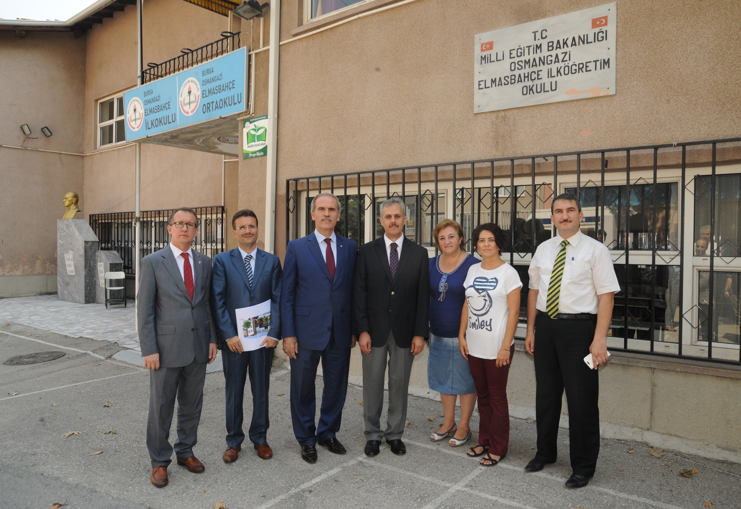 Bursa’yı vizyon projeleriyle geleceğe taşırken, eğitime ve eğitim kurumlarına büyük önem ve destek veren Büyükşehir Belediye Başkanı Recep Altepe, Elmasbahçeler Mahallesi’ndeki Elmasbahçe İlk ve Orta okullarının da tüm birimleriyle yenileneceğini söyledi. Başkan Altepe, İl Milli Eğitim Müdürü Veli Sarıkaya ve Büyükşehir Belediyesi bürokratları ile birlikte Elmasbahçe İlk ve Orta Okulu’nda incelemelerde bulundu.