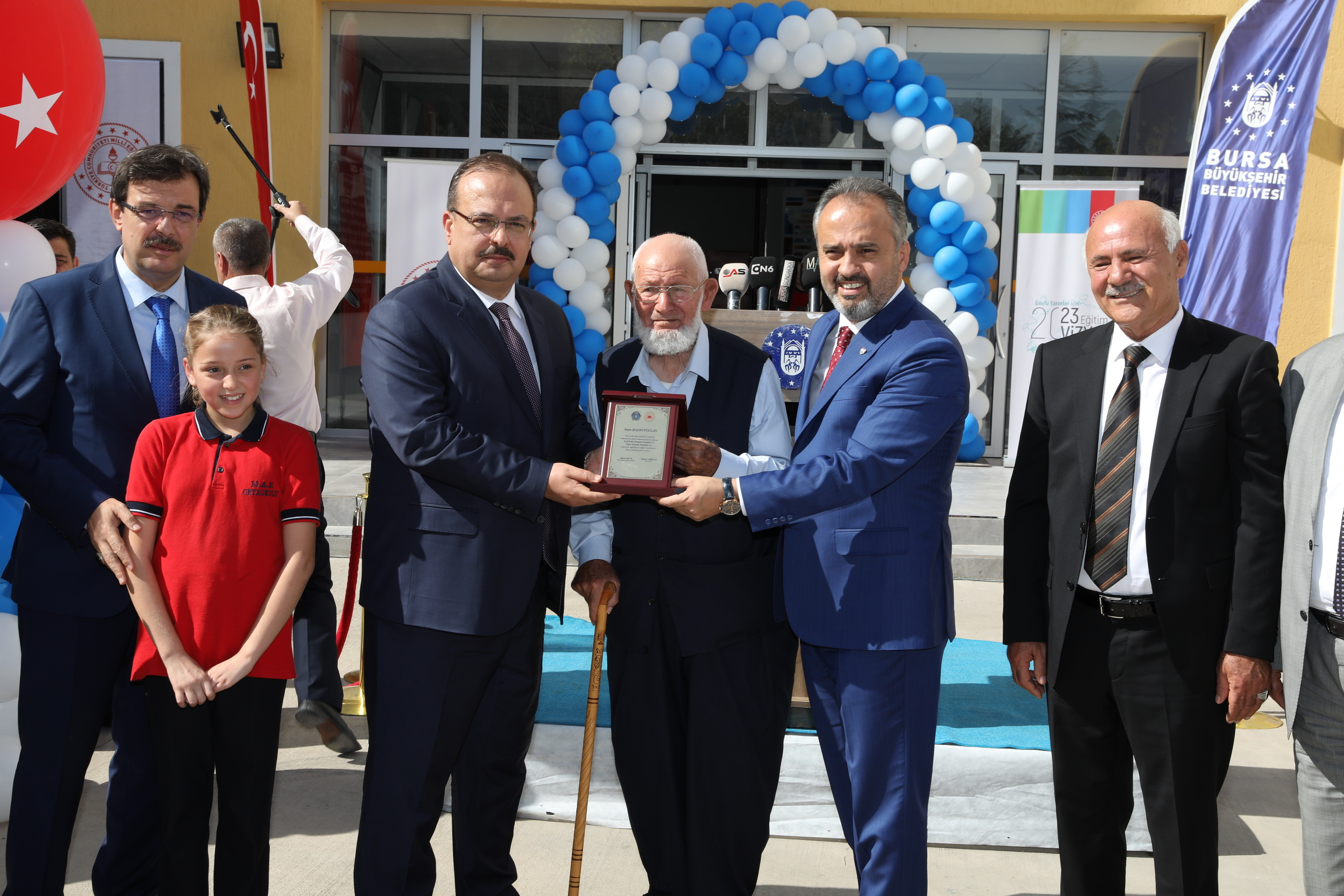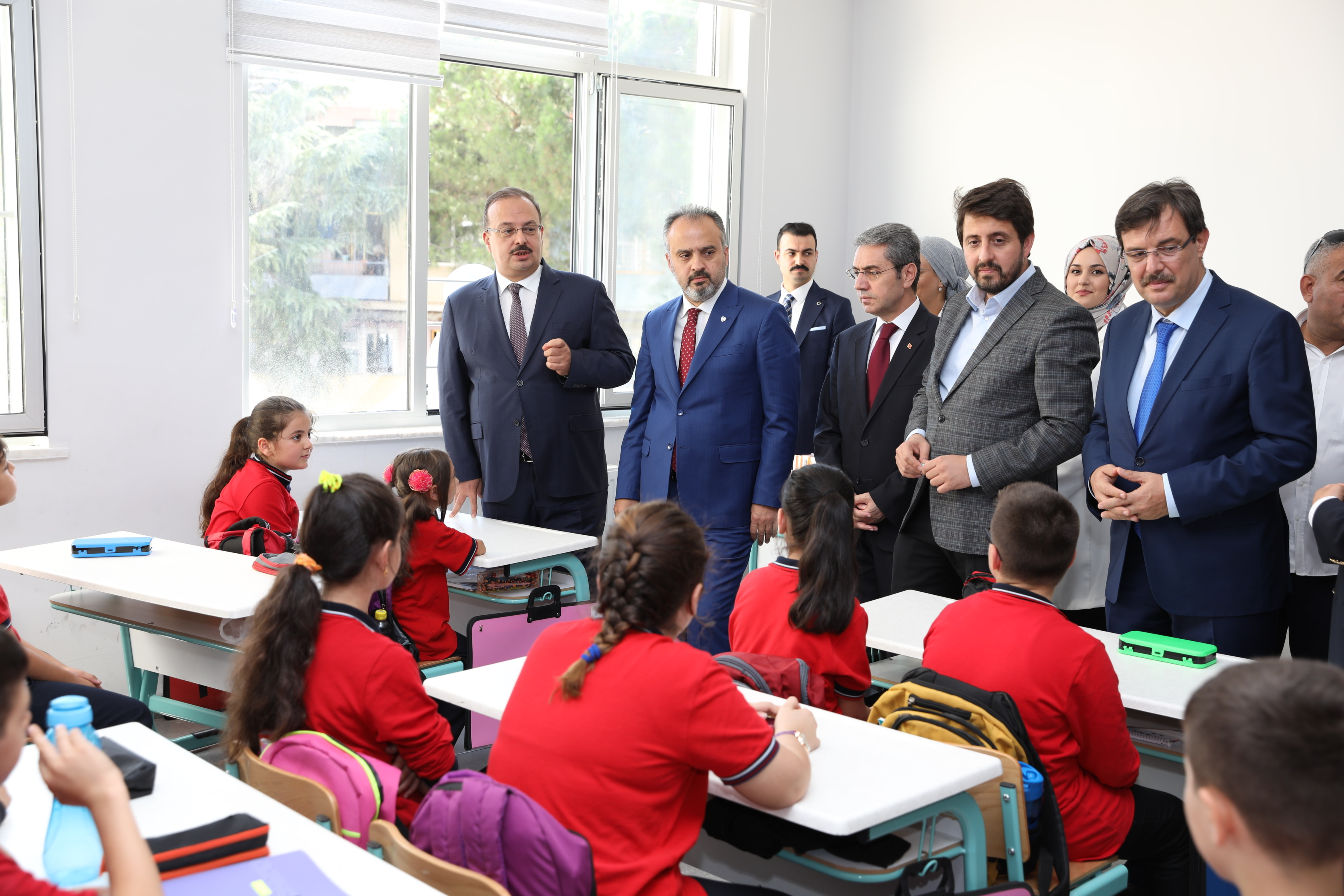 Törene, İl Emniyet Müdürü Tacettin Aslan ile ilçe kaymakamı, Yıldırım ve Nilüfer Belediye başkanları, muhtarlar, öğretmenler ve öğrenciler de katıldı. Okulun yapımına destek olan hayırsever iş insanları adına konuşan Nurettin Kutlucan, anne ve babasının adı verilen okulda çocukların geleceğe hazırlanmasından dolayı çok mutlu olduklarını ifade etti. Öğrencilerin şiir okuyarak renk kattığı törende, hayırsever iş insanlarına teşekkür plaketi verildi. Vali Canbolat ve Başkan Aktaş, kurdele kesilerek açılışı yapılan okulda sınıfları gezdi, öğrencilerle bol bol sohbet etti.