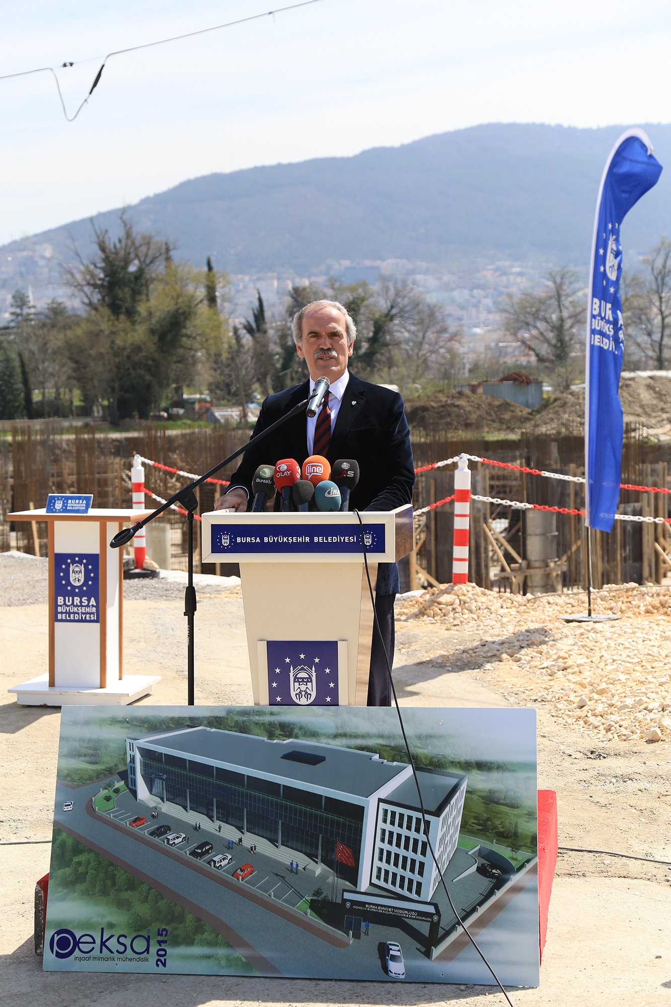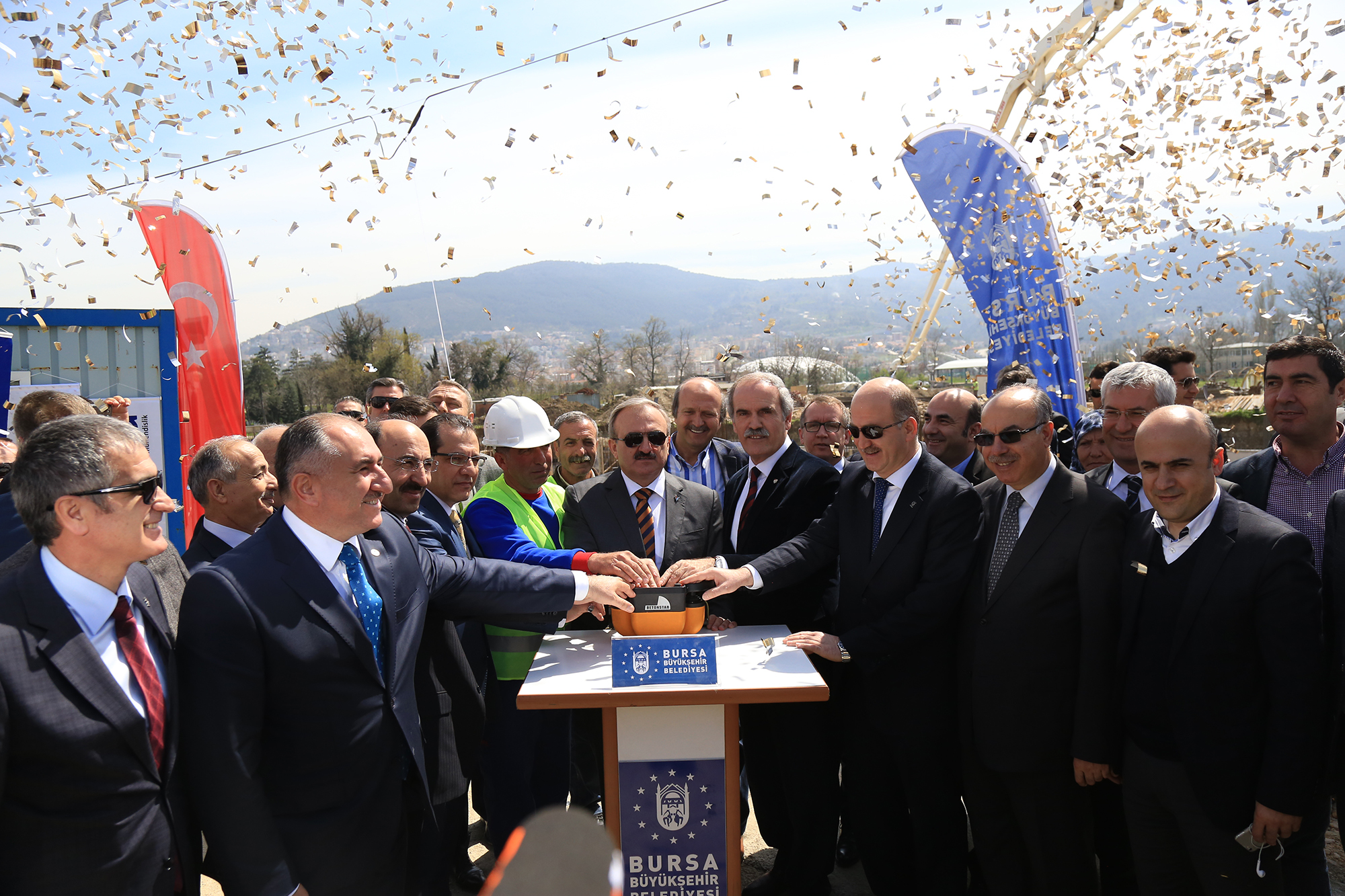 - BURSA VALİSİ MÜNİR KARALOĞLU, BÜYÜKŞEHİR BELEDİYE BAŞKANI RECEP ALTEPE VE İL EMNİYET MÜDÜRÜ SELAMİ YILDIZ, KOM BİNASININ TEMELİNİ TÖRENLE ATTI.