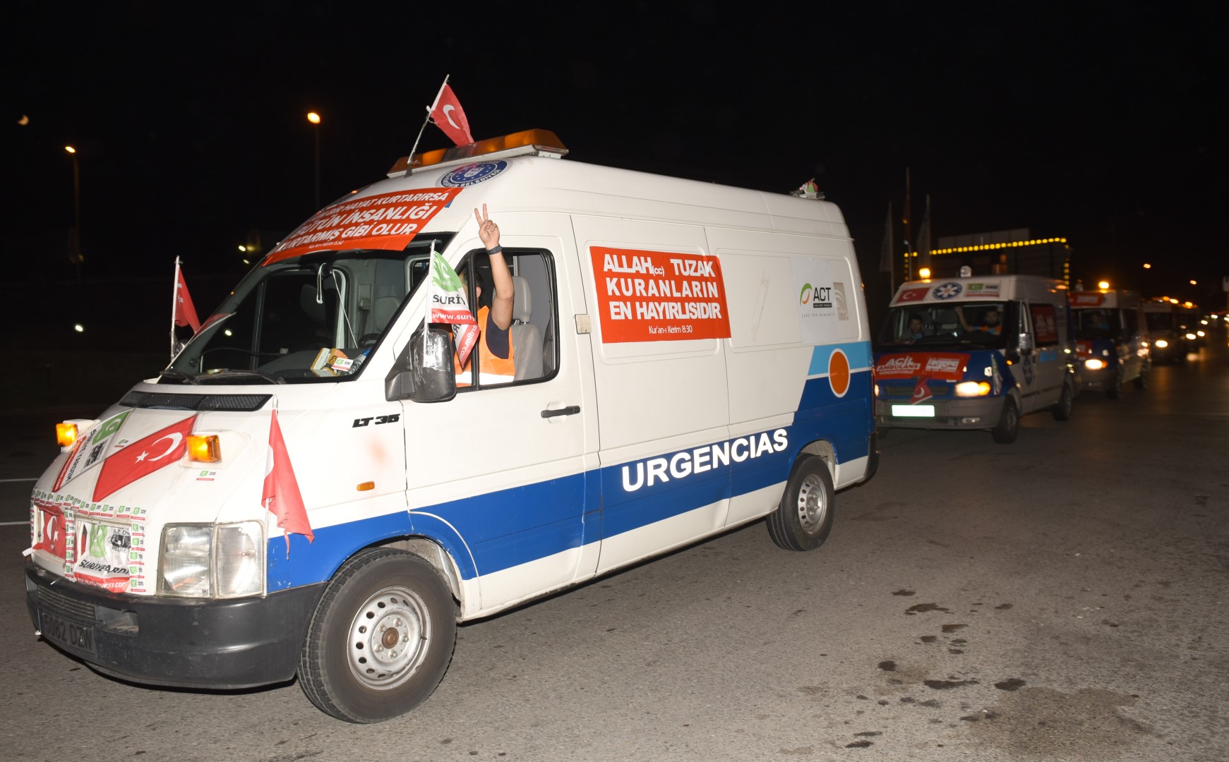 AFAD, Kızılay ve Avrasya Vakfı gözetiminde Hatay Cilvegözü Sınır Kapısına doğru yola çıkan ambulanslar, buradan Suriye’ye geçerek hemen hizmet vermeye başlayacak.