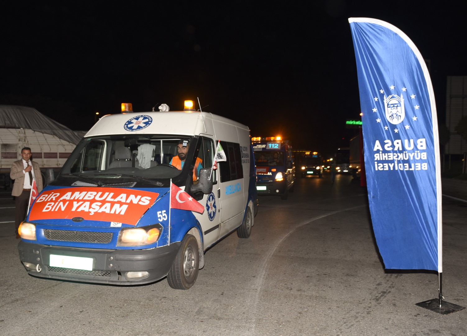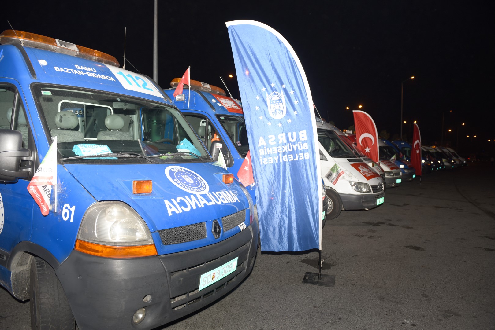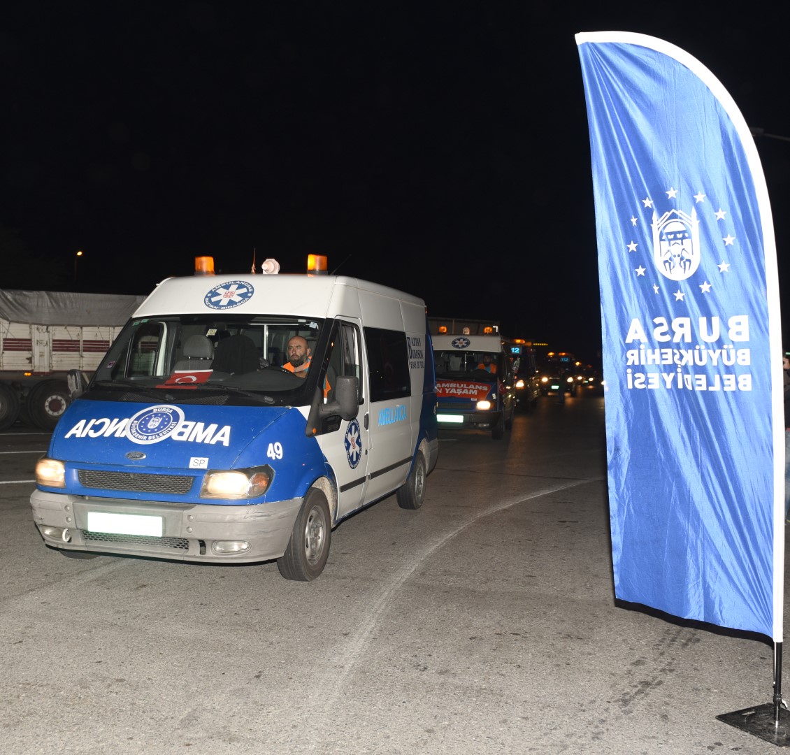 - BURSA BÜYÜKŞEHİR BELEDİYESİ TARAFINDAN ALINAN 10 AMBULANSIN DA ARALARINDA BULUNDUĞU 24 AMBULANS, SAĞLIK BAKANLIĞI, KIZILAY VE AFAD DENETİMİNDE SURİYE’YE ULAŞTIRILMAK ÜZERE YOLA ÇIKTI.
