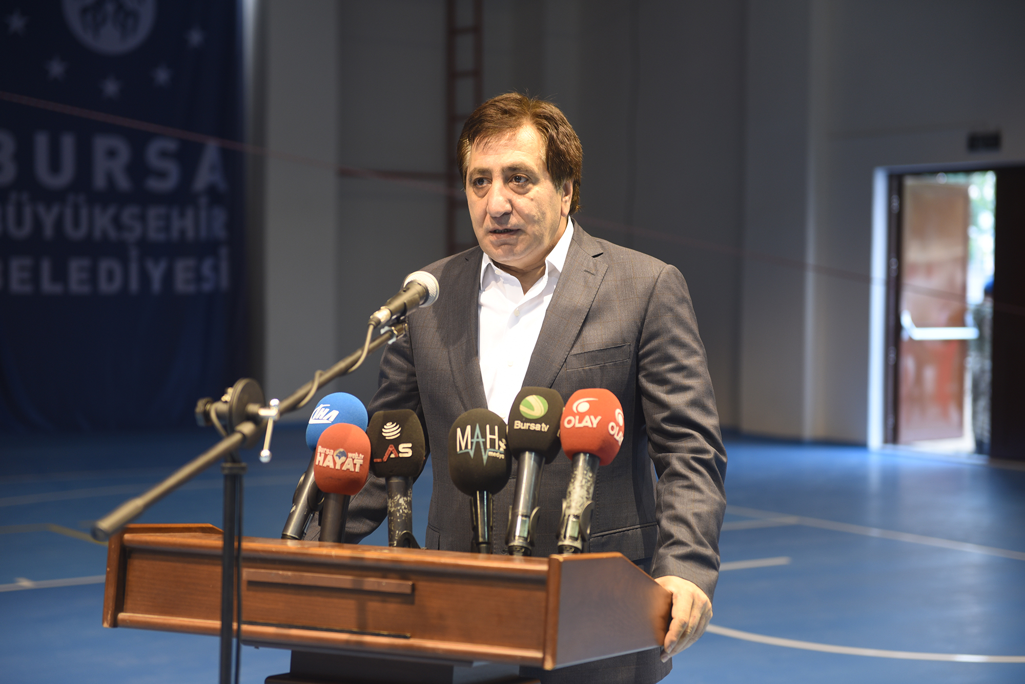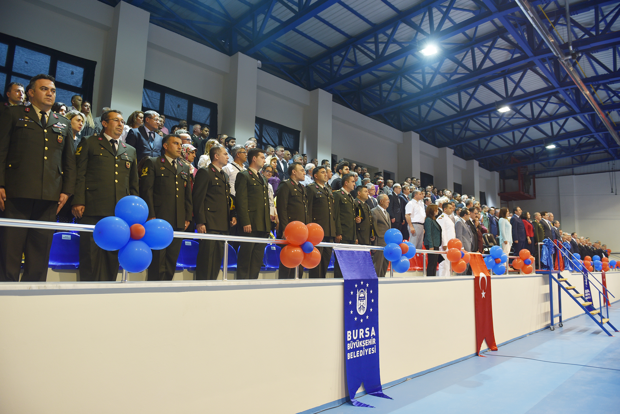 Bursa Büyükşehir Belediye Başkanı Recep Altepe, bu vatan için toprağa düşmüş olan Jandarma Uzman Çavuş Ümit İnan’ın ismini taşıyan spor salonunu hizmete açmanın mutluluğunu yaşadıklarını söyledi. Türkiye’nin her geçen gün geliştiğini ve kalkındığını ifade eden Başkan Altepe, kurulan tüm tuzaklara rağmen büyümenin devam ettiğini ve yılın ilk 6 ayındaki büyümenin yüzde 5 olarak gerçekleştiğini vurguladı. “Bu gösteriyor ki Türkiye’yi kimse durduramayacak” diyen Başkan Altepe, “Bu günlere kolay gelinmedi. Başta bu toprakları bize vatan yapan Osman Gazi, Orhan Gazi’den başlayarak, büyük kurtuluş mücadelesi veren ulu önder Mustafa Kemal Atatürk’e kadar tüm şehitlerimizi, gazilerimizi rahmetle, minnetle, şükranla anıyoruz” dedi.