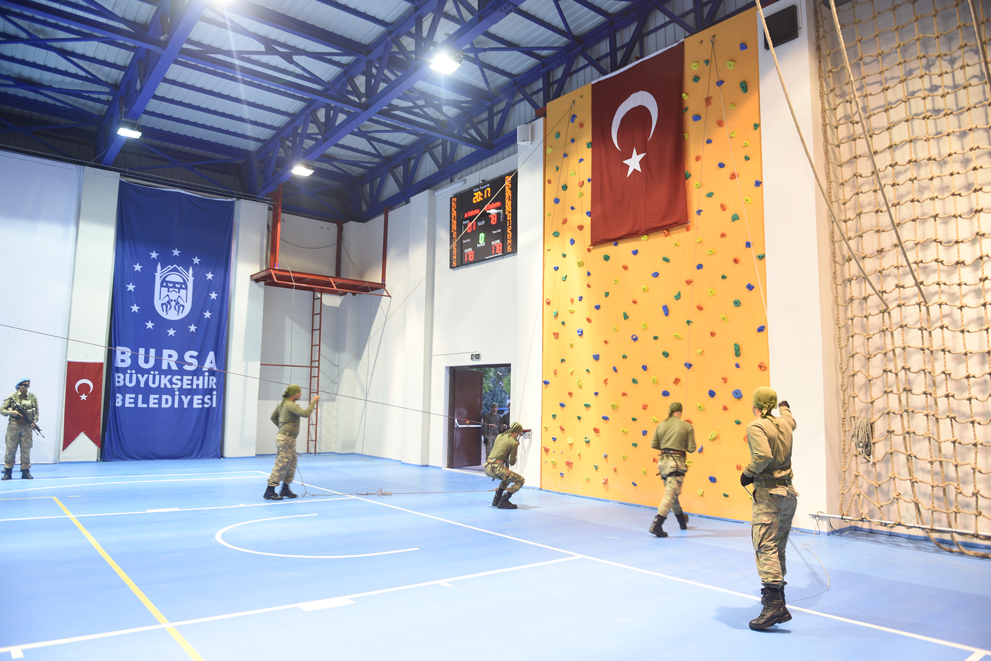 Bursa’yı sporda da marka kent haline getirmek amacıyla bir taraftan tesisleşmeye ve bir taraftan da Belediyespor Kulübü aracılığıyla lisanslı sporcu sayısının artırılmasına yönelik çalışmalara hız veren Büyükşehir Belediyesi İl Jandarma Komutanlığı’na da bir spor salonu kazandırdı. İçinde Jandarma Arama Kurtarma (JAK), AFAD ve AKUT timlerinin eğitim yapmasına imkan sağlayacak özel donanımların da bulunduğu spor salonu, Jandarma Teşkilatı’nın kuruluşunun 175’inci yıldönümünde törenle hizmete açıldı. Spor salonun açılış törenine Vali İzzettin Küçük, Büyükşehir Belediye Başkanı Recep Altepe, İl Jandarma Komutanı Tuğgeneral Ahmet Hacıoğlu, AK Parti İl Başkanı Cemalettin Torun, BTSO Başkanı İbrahim Burkay ve çok sayıda davetli katıldı.