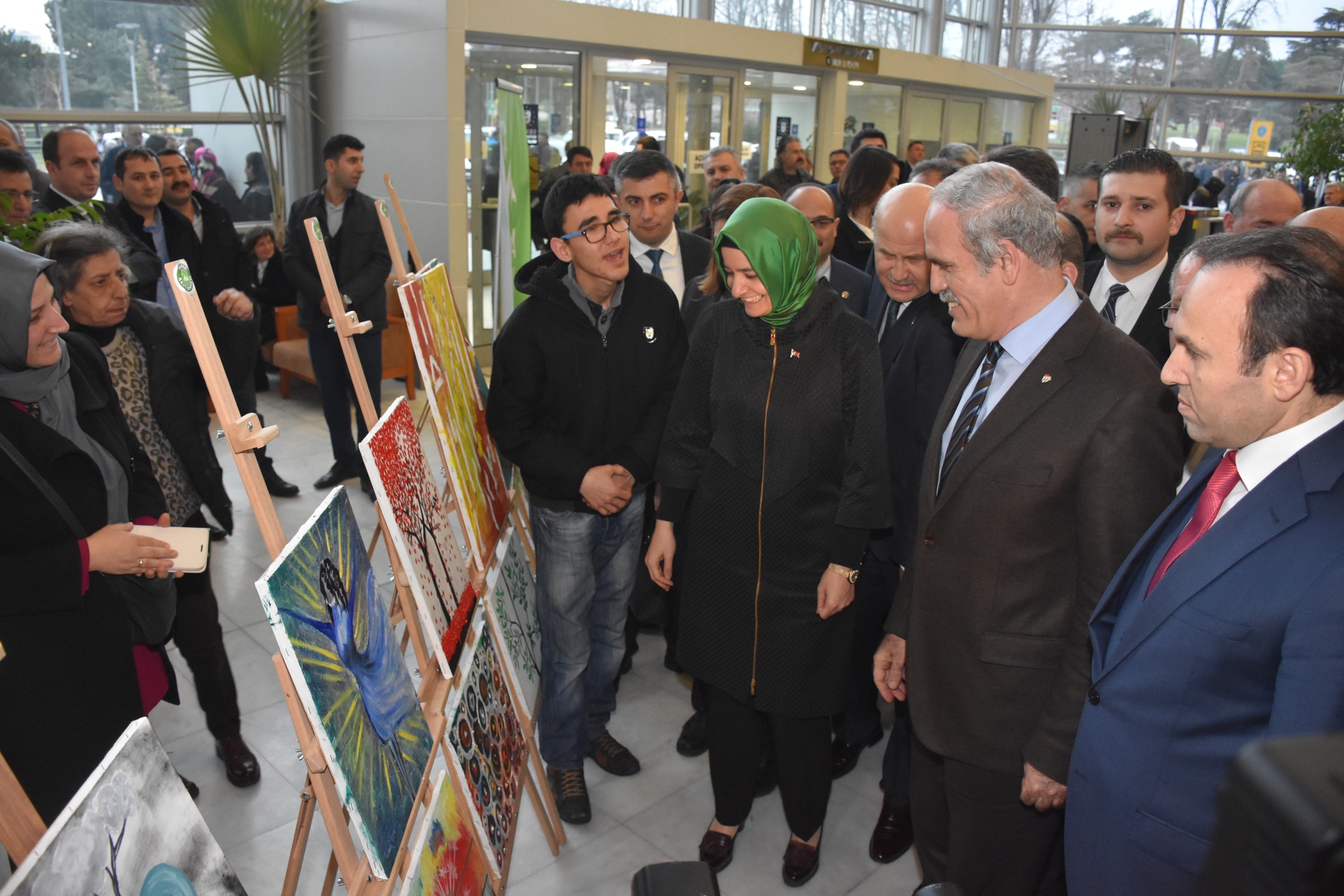 Program öncesinde Bakan Dr. Fatma Betül Sayan Kaya, Büyükşehir Belediye Başkanı Recep Altepe ve beraberindekiler Büyükşehir Belediyesi’nin mobil eğitim araçlarını gezerek BUMEP ve BENMEP kapsamında eğitim alan kursiyerlerle sohbet ettiler. Ardından Bakan Kaya ve yanındakiler, salon girişinde Bursa Kent Konseyi Engelliler Meclisi üyelerinin hazırladığı resim sergisini gezerek bilgi aldı.