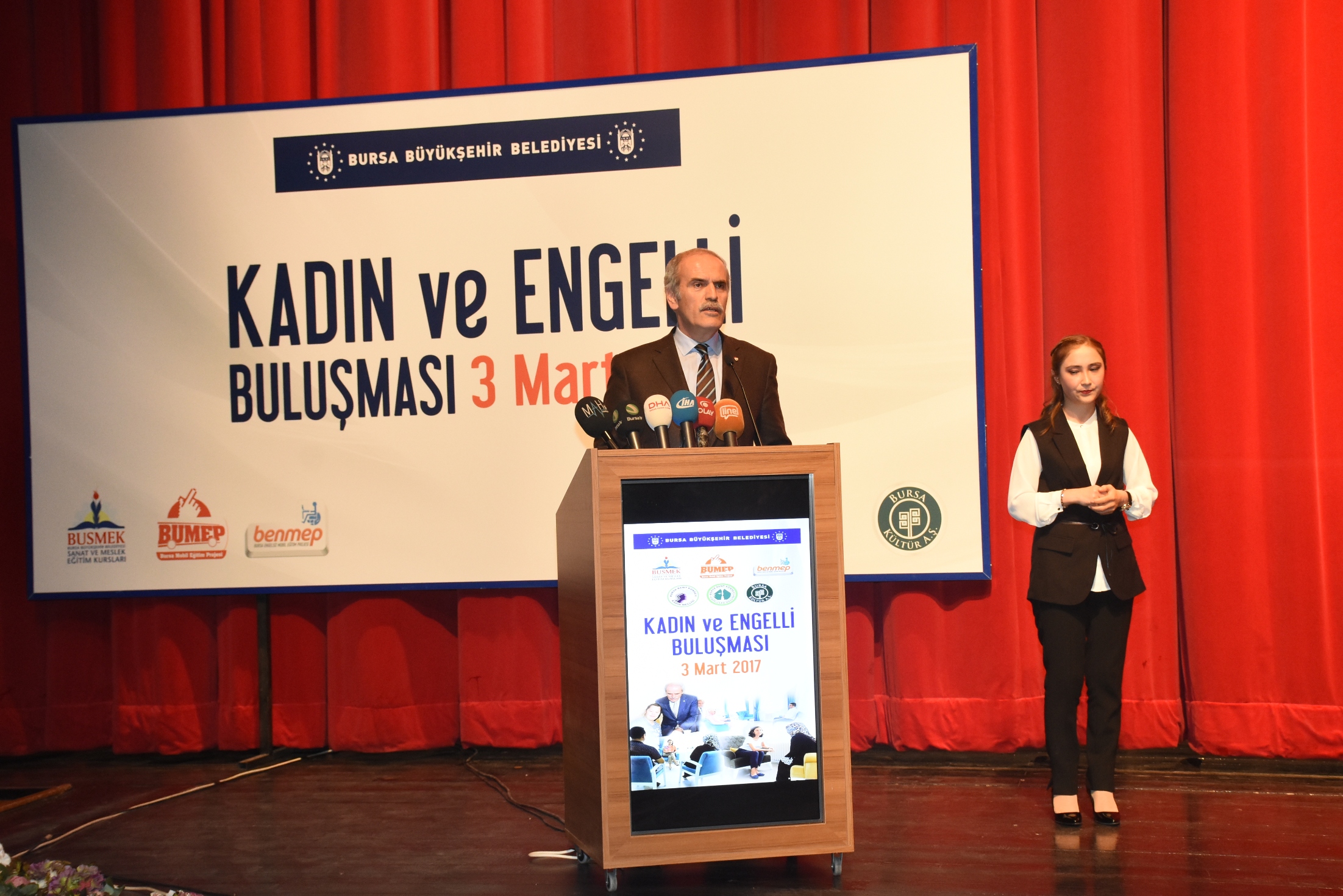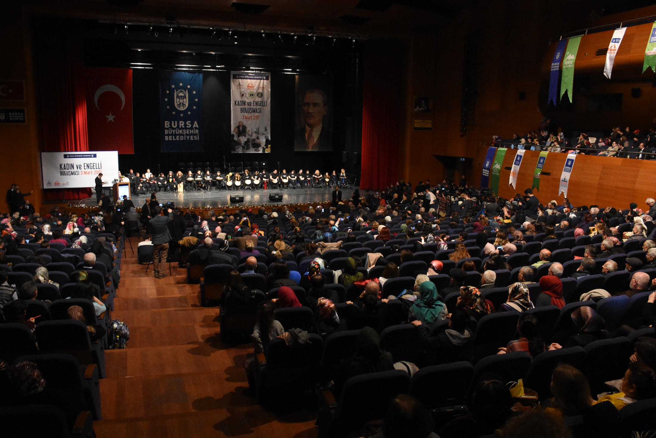 Bursa Büyükşehir Belediyesi tarafından Bursa Kent Konseyi Engelliler Meclisi ve Kadın Meclisi’nin katkılarıyla ‘Kadın ve Engelliler Buluşması’, Aile ve Sosyal Politikalar Bakanı Dr. Fatma Betül Sayan Kaya’nın katılımıyla Atatürk Kongre Kültür Merkezi (Merinos AKKM) Osmangazi Salonu’nda yapıldı. Programa, Bursa Büyükşehir Belediye Başkanı Recep Altepe, Bursa Milletvekilleri Bennur Karaburun, Emine Yavuz Gözgeç, Osman Mestan, AK Parti Bura İl Başkanı Cemalettin Torun, Bursa Kent Konseyi Başkanı Hasan Çepni, Büyükşehir Belediyesi Genel Sekreter Yardımcısı Neşet Çakmaklı, Bursa Aile ve Sosyal Politikalar İl Müdürü Erkut Öneş, ilçe belediye başkanları, belediye bürokratları, sivil toplum kuruluşlarının temsilcileri ve vatandaşlar katıldı.