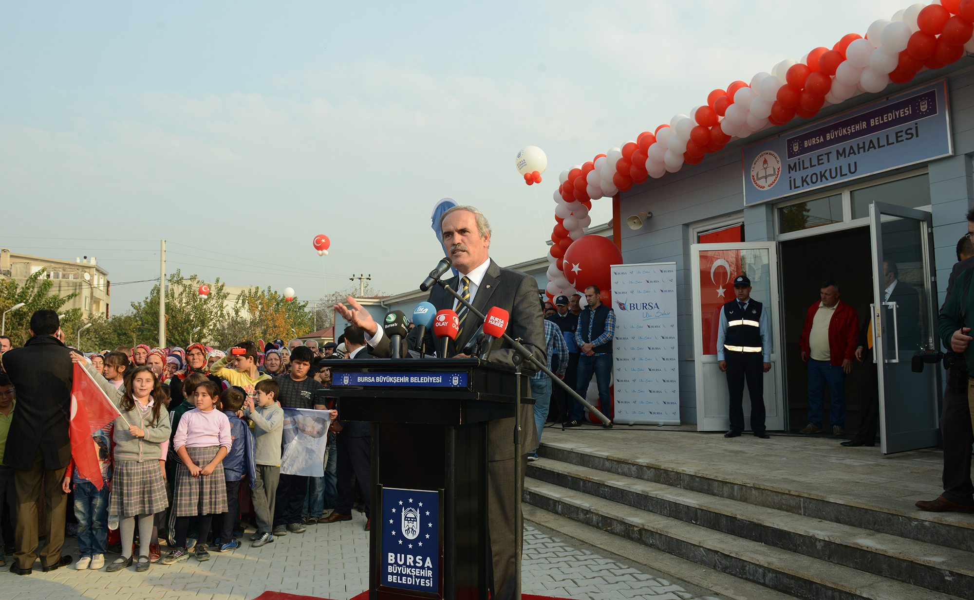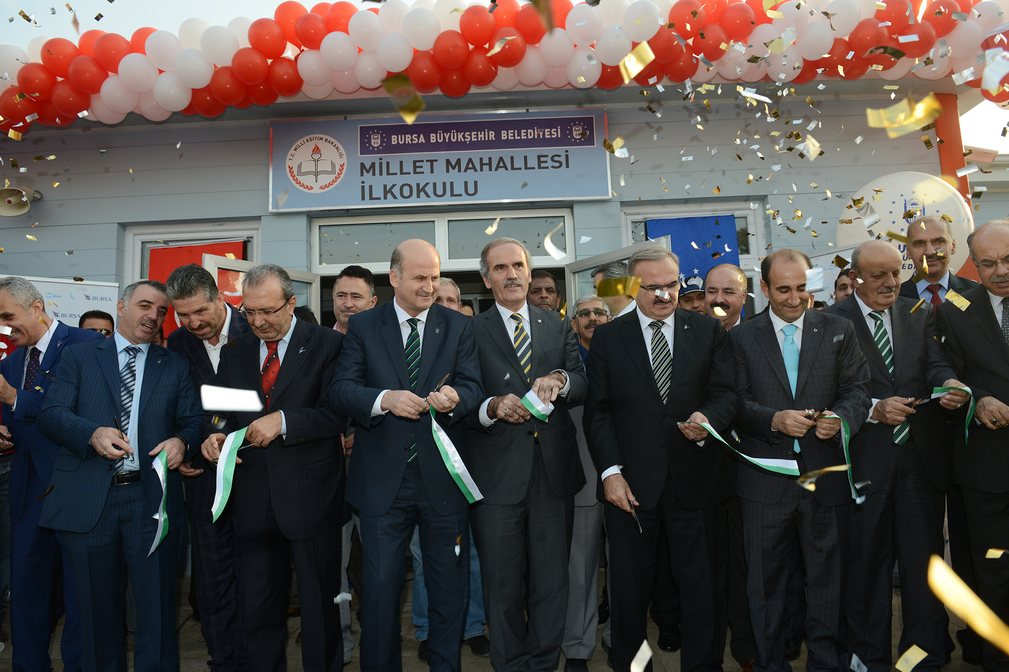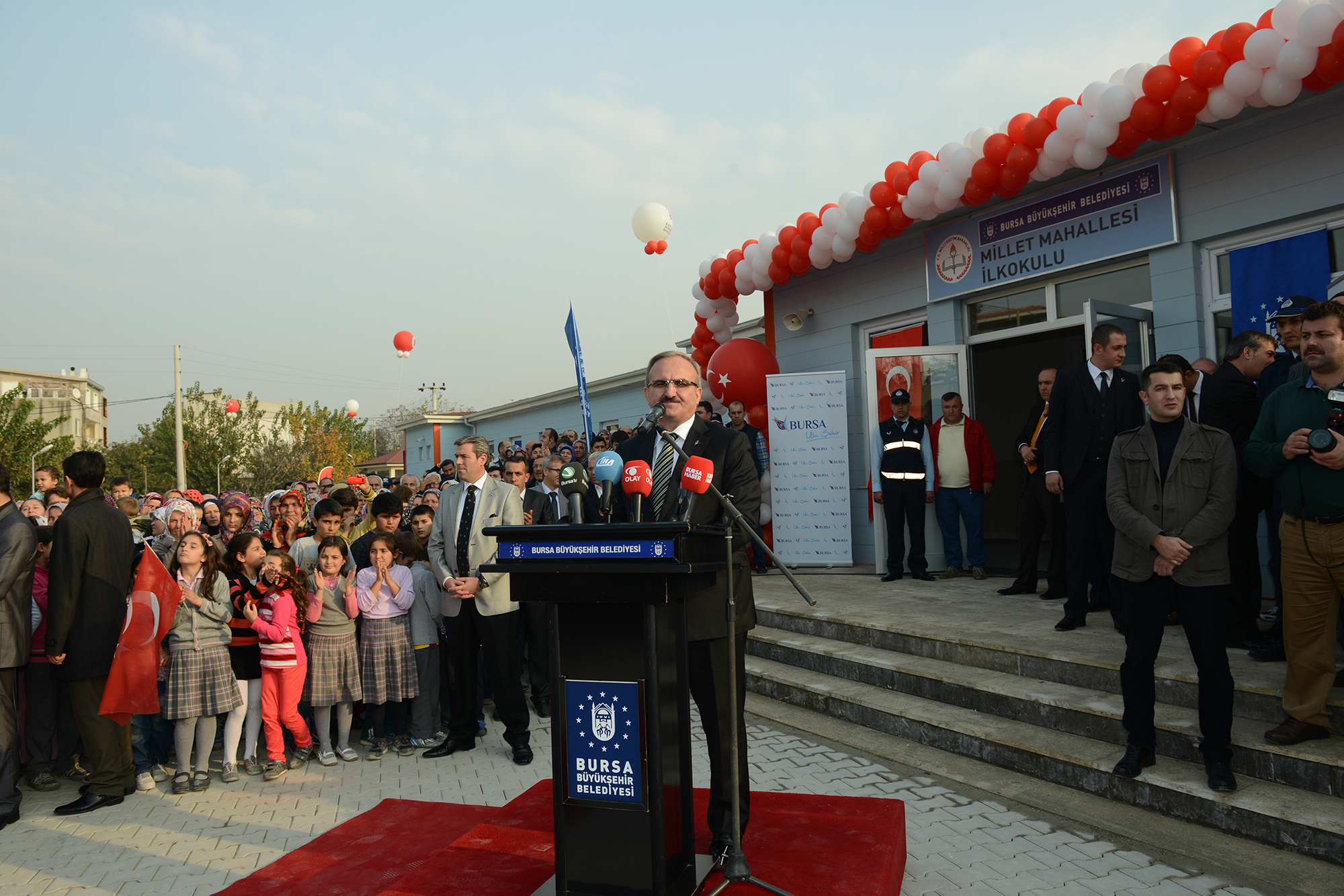 - Bursa’yı çağdaş bir geleceğe taşıyan Büyükşehir Belediyesi’nin eğitime destek projeleri kapsamında Millet Mahallesi’ne kazandırılan Millet Mahallesi Temel Eğitim İlkokulu törenle hizmete açıldı.