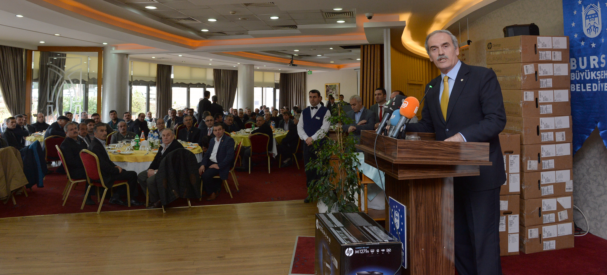 Bursa’nın gelişmesini ve her alanda en iyi konuma ulaşmasını hedeflediklerini anlatan Başkan Altepe, konuşmasının ardından muhtarlara bilgisayarlarını hediye etti. İlçelerin belediye başkanları ile Büyükşehir Belediyesi bürokratlarının hazır bulunduğu törende, muhtarlar da kendilerine her zaman destek olan Başkan Altepe’ye teşekkür etti. Program, hatıra fotoğrafı çekimiyle sona erdi.