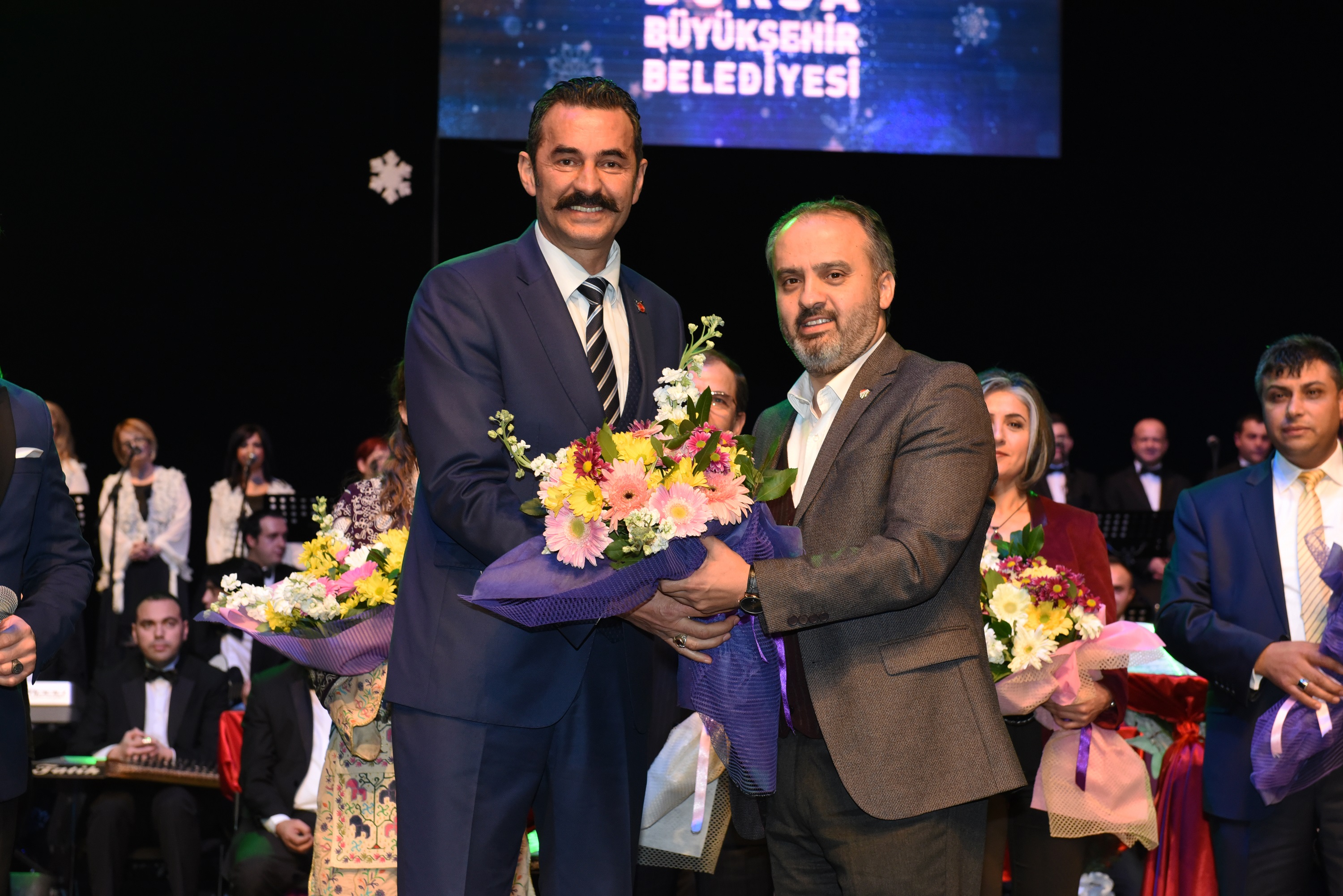 Konserin sonunda sahneye çıkan Büyükşehir Belediye Başkanı Alinur Aktaş, müzik dolu gece sayesinde Türkiye’nin farklı şehirlerini gezdiklerini, bazen neşelendiklerini bazen de duygulandıklarını söyledi. Tüm sanatçıların hünerlerini en iyi şekilde gösterdiklerini dile getiren Başkan Aktaş, “Bursa, doğudan, batıdan, kuzeyden, güneyden, Balkanlardan, Kafkaslardan gelenlere oluşan rengârenk bir çiçek bahçesi. Bursa’nın bu özelliği sahreye çok güzel yansıtıldı. Böyle güzel mekanların hazırlanmasında emeği geçen tüm büyüklerimizi, başta hocam olan rahmetli Hikmet Şahin’i anmadan geçemeyeceğim. Yine buraların geliştirilmesi için mücadele veren Recep Altepe başkanımıza teşekkür ediyorum. Bursa ticaretiyle, ihracatıyla, dağıyla, ovasıyla, deniziyle meşhur. Aynı zamanda kültür ve sanatıyla da meşhur. Bu akşam sanatta daha nerelere gidebileceğini net olarak gördük. Bursa için yoğun bir çalışma temposu içindeyiz. Ama kültür, sanat, eğlence olduğunda da dönem dönem bir araya gelip, bunun keyfini tadını çıkaracağız” diye konuştu.