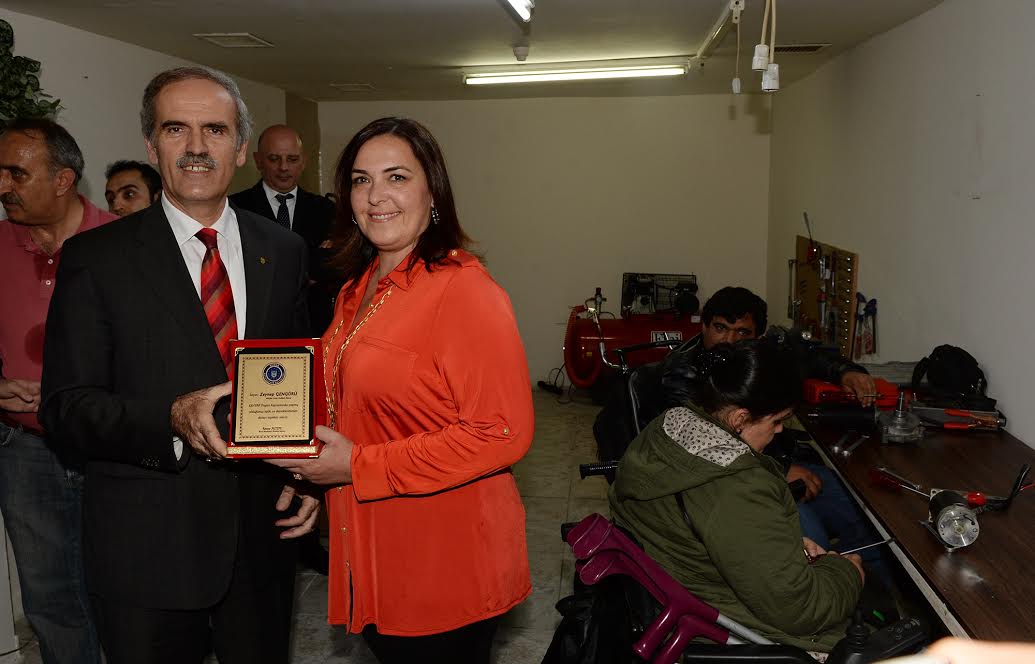 Başkan Altepe, onarım merkezine destek sağlayan Yardım Gönüllüleri Başkanı İpek Özcan ve Nilüfer Lions Kulübü Başkanı Zeynep Diniz Gengörü’ye birer teşekkür plaket takdim etti. Fevzi Çakmak Caddesi’nde yer alan merkezde, akülü ve aküsüz her türlü aracın tamir ve bakımı yapılabiliyor. Merkezde sadece engelliler görev alıyor.
