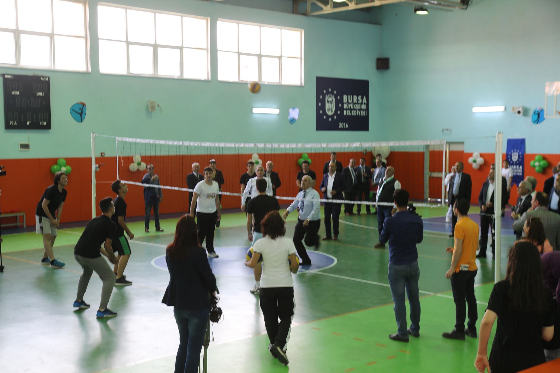 Konuşmaların ardından spor salonunu açılışı, Başkan Altepe ve protokol üyeleri tarafından yapıldı. Çamlıca Anadolu Lisesi Okul Müdürü Engin Koç, günün anısına Başkan Altepe’ye çiçek ve plaket takdim etti. Açılışın ardından Başkan Altepe, okul öğrencileriyle voleybol oynadı.