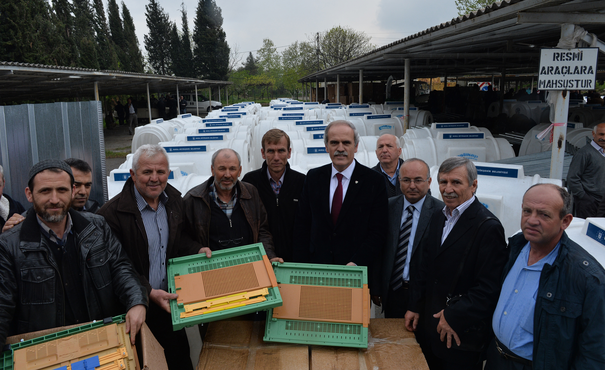 Konuşmaların ardından Başkan Altepe ve protokol üyeleri, çiftçilere dağıtılacak buzağı kulübeleriyle sera naylonlarını inceledi. Başkan Altepe, üreticilerle hatıra fotoğrafı da çektirdi.