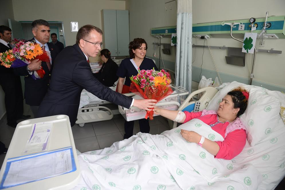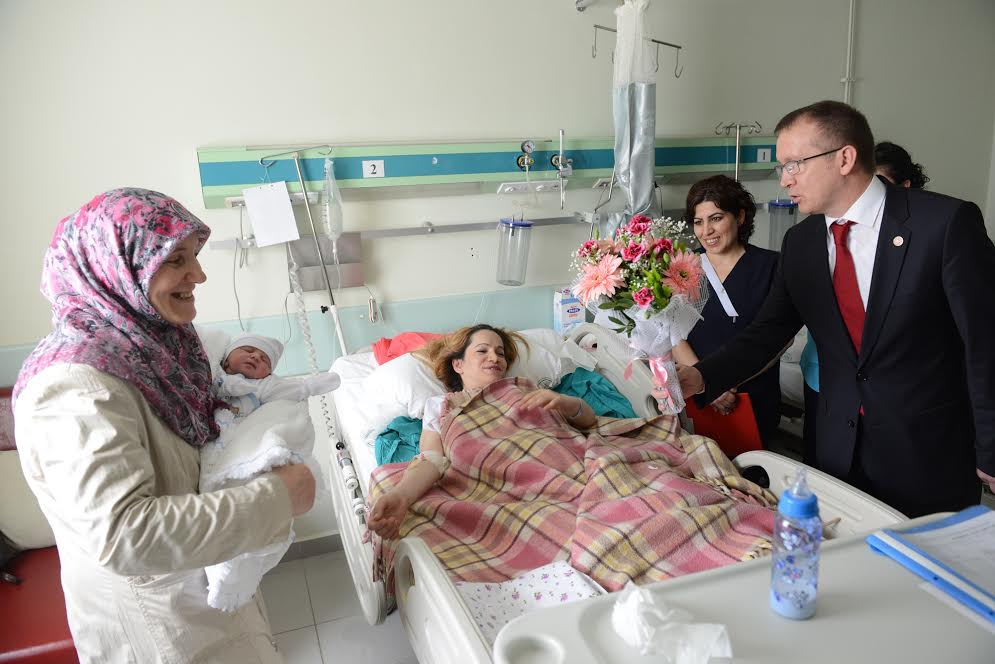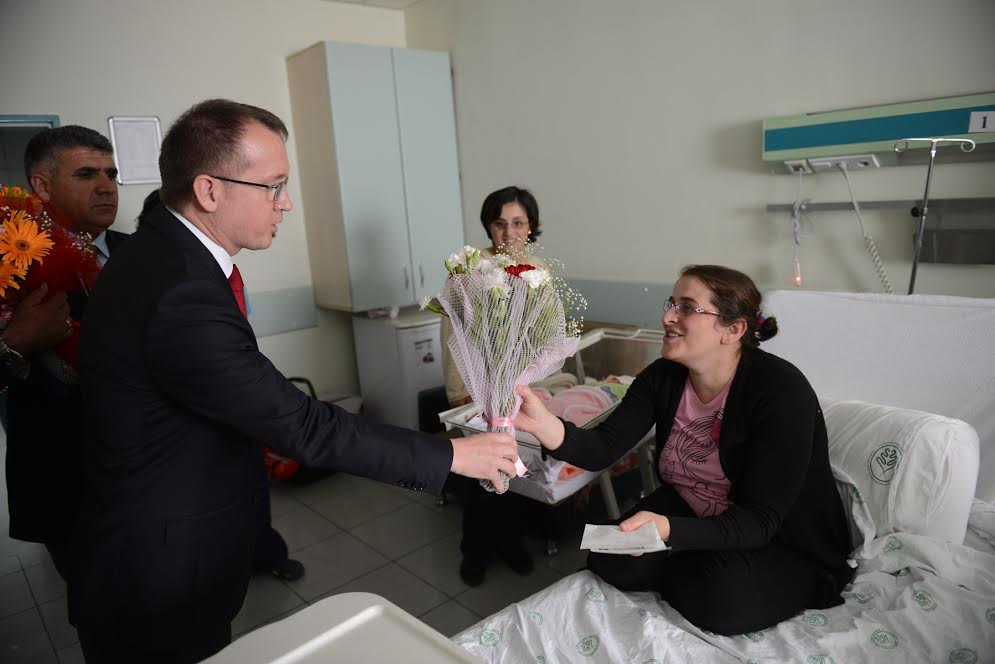Büyükşehir Belediye Başkanvekili Abdülkadir Karlık, Şevket Yılmaz Eğitim ve Araştırma Hastanesi’nde doğum yapan yeni anneleri ziyaret ederek anneler gününü kutladı.