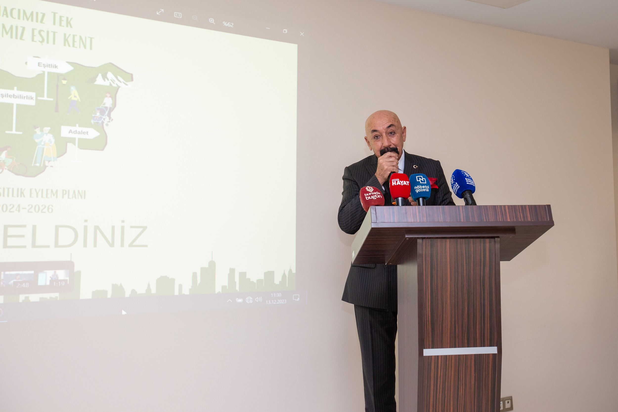 Belediye Meclisi’nde 21 Kasım 2023 tarihinde onaylanan ‘Yerel Eşitlik Eylem Planı’, tüm bireylere yönelik her türlü ayrımcılığın sona erdirilmesi, yoksullukla mücadele, sürdürülebilir kent ve yerleşim alanları, güvenli ulaşım gibi çalışma alanlarını belirleme ve bu alanlarda önemli bir yol haritası sunacak. ‘Tek hedefimiz eşit kent’ sloganıyla Bursa Yerel Eşitlik Eylem Planı doğrultusunda sürdürülebilir kalkınma amaçlarının yerelleşmesi de amaçlanıyor.