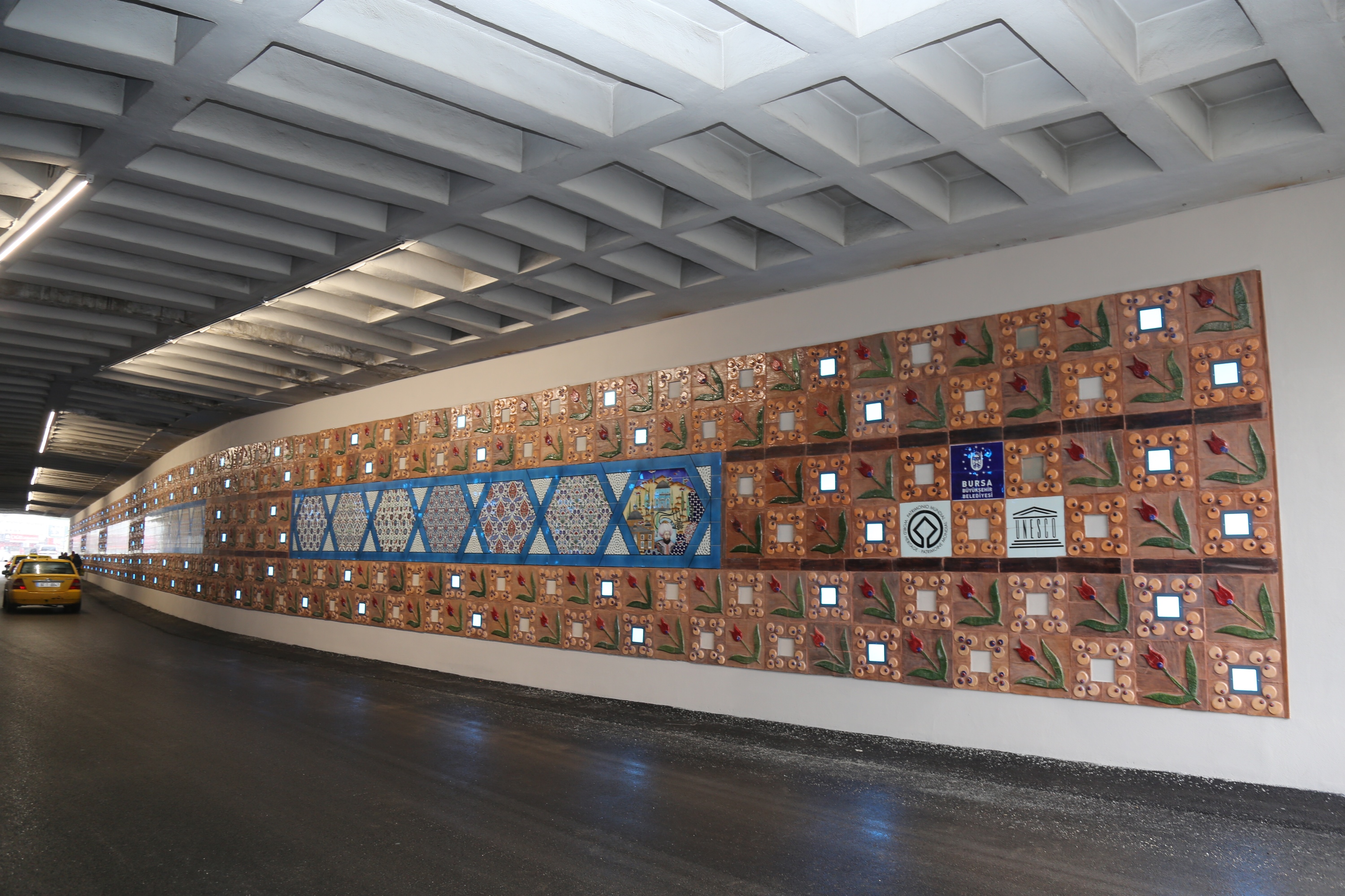- Başkan Altepe, “Kültürümüze özgü desenler ve işlemelerle özel bir kompozisyon hazırlandı, Yeşil Külliyesi’ndeki tüp geçide nakledildi ve geçit ayrı bir havaya kavuştu” dedi.