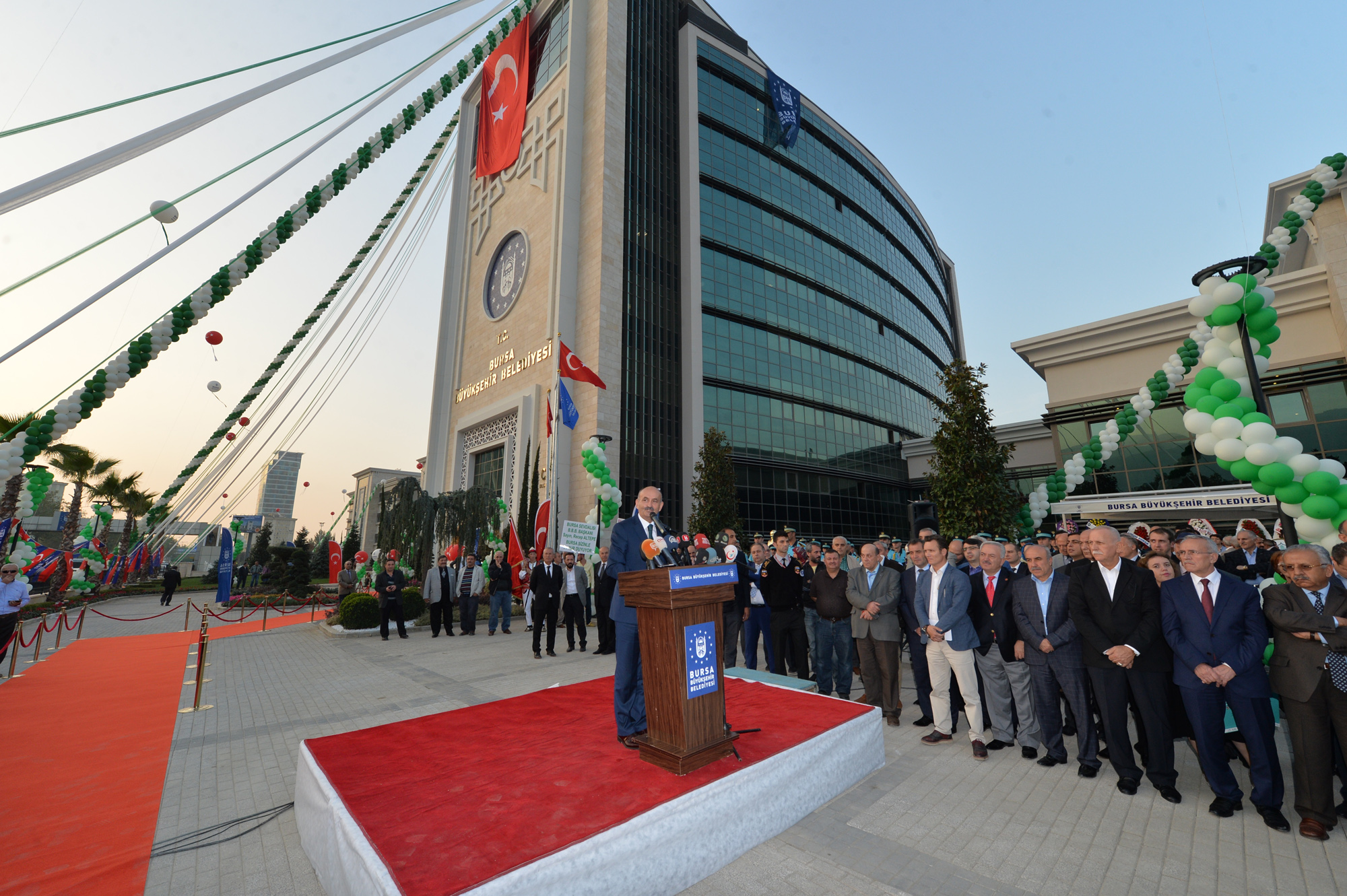 Kentin farklı noktalarında bulunan BUSKİ ve farklı kurumlara ait binalarda hizmet veren Büyükşehir Belediyesi, tüm hizmet birimlerini modern bina ile tek çatı altında topladı. Büyükşehir Belediye Başkanı Recep Altepe, “Çardakta başlayan halka hizmet hareketi, bugünden itibaren Bursa’nın bu modern abidesinde devam edecek” dedi.